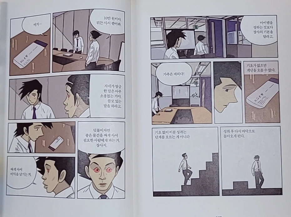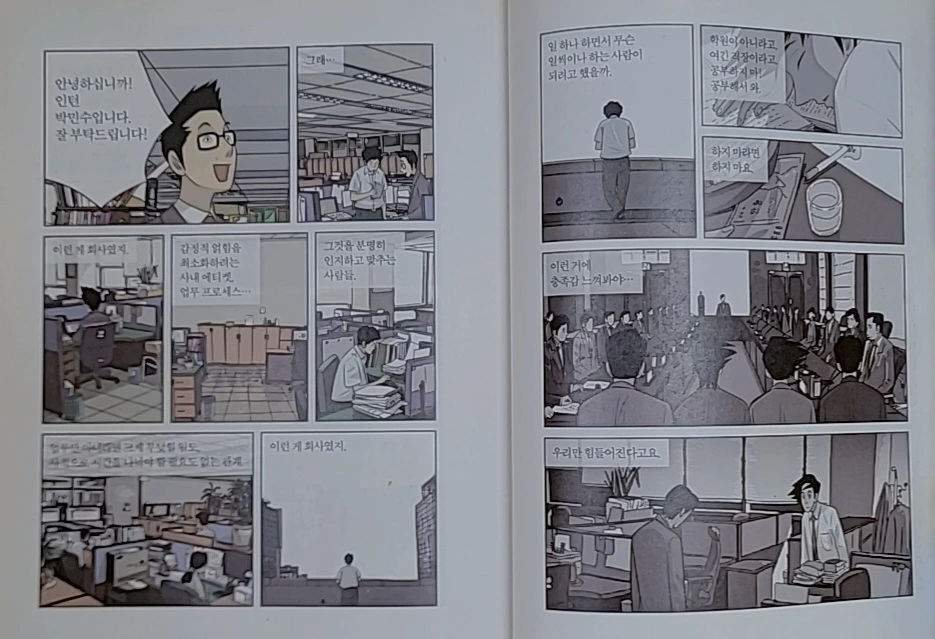 그래... 이런 게 회사였지. 감정적 얽힘을 최소화하려는 사내 에티켓, 업무 프로세스... 그것을 인지하고 맞추는 사람들. 업무만 아니라면 크게 부딪힐 일도 사적으로 시간을 나눠야 할 필요도 없는 관계. 이런 게 회사였지. 일 하나 하면서 무슨 일씩이나 하는 사람이 되려고 했을까.