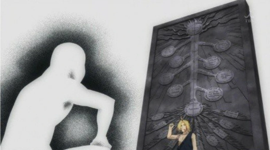 마지막으로 에드워드는 자신의 잘못으로 잃어버린 동생 알폰소의 육체를 구하기 위해 목숨을 걸고 ‘진리의 문(작중 ‘신’에 해당하는 존재)에 다시 들어간다.