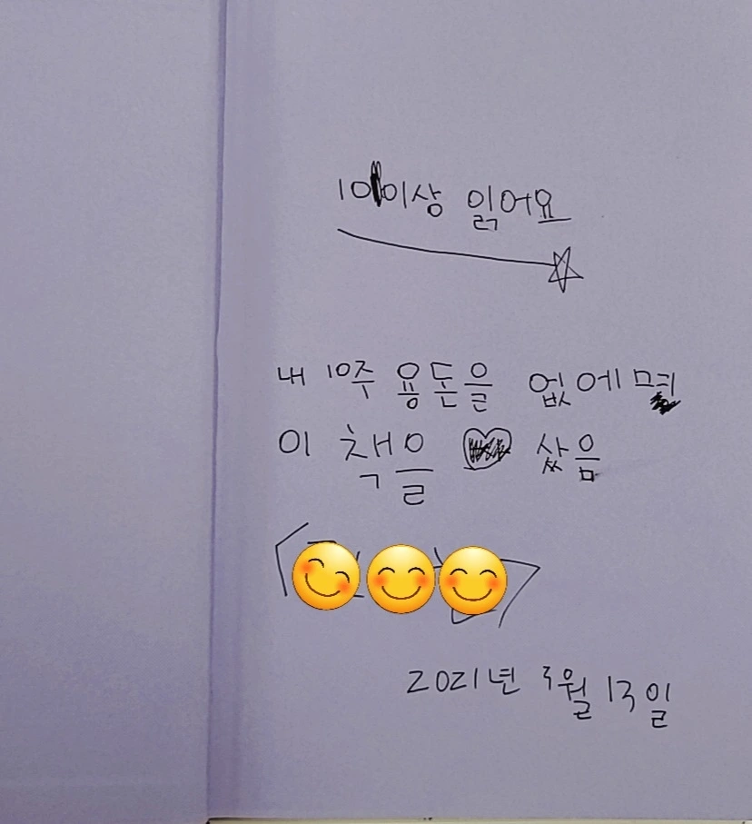 내 기억으로 이 책은 딸애가 최초로 타인에게 자신의 금쪽같은 돈을 쓴 역사적인 기념물이다. 그 당시 나는 이미 전자책으로 이 책을 읽고 감동을 받아 구매하려고 작정한 상황이었다. 작년 내 생일 즈음해서 벌어진 일이었다.