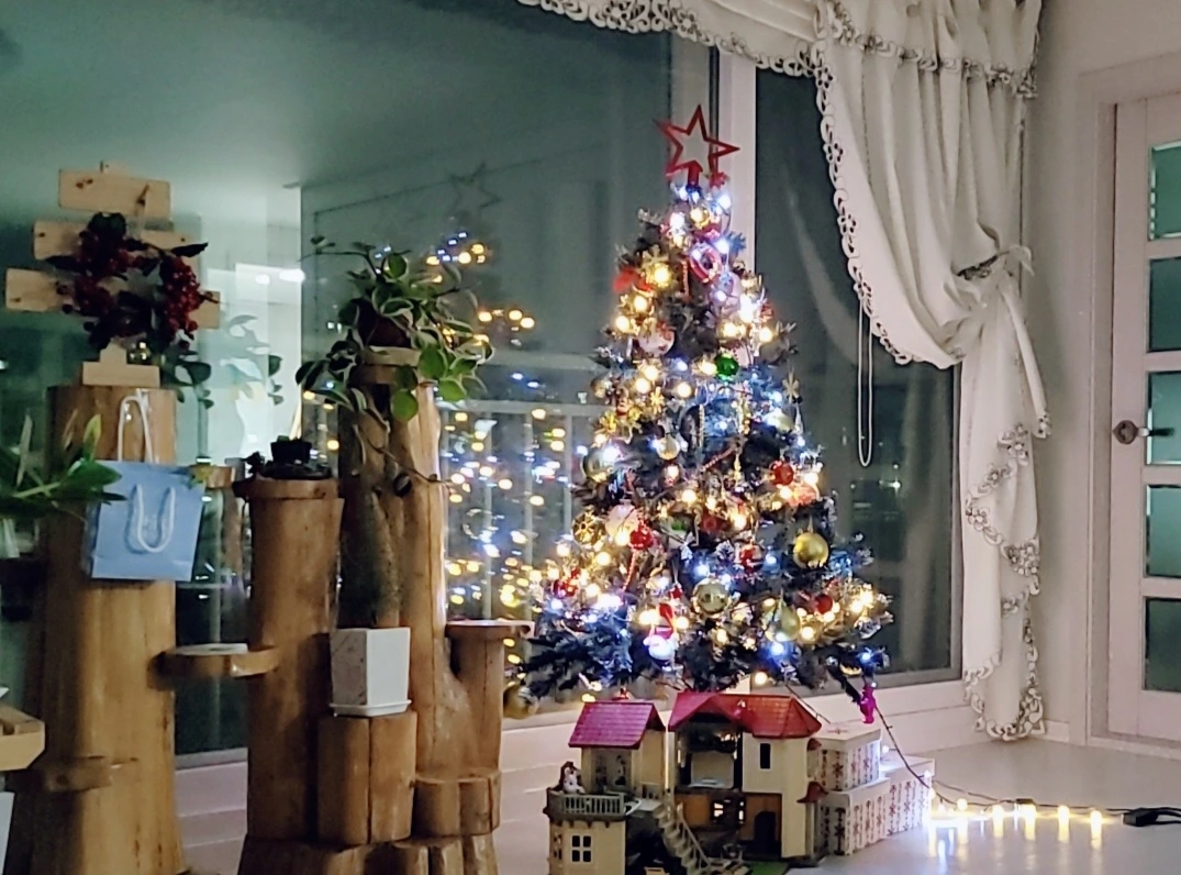 우리 집 크리스마스트리. 벌써 산타할아버지에게 받을 선물함이 곳곳에 놓여 있다.