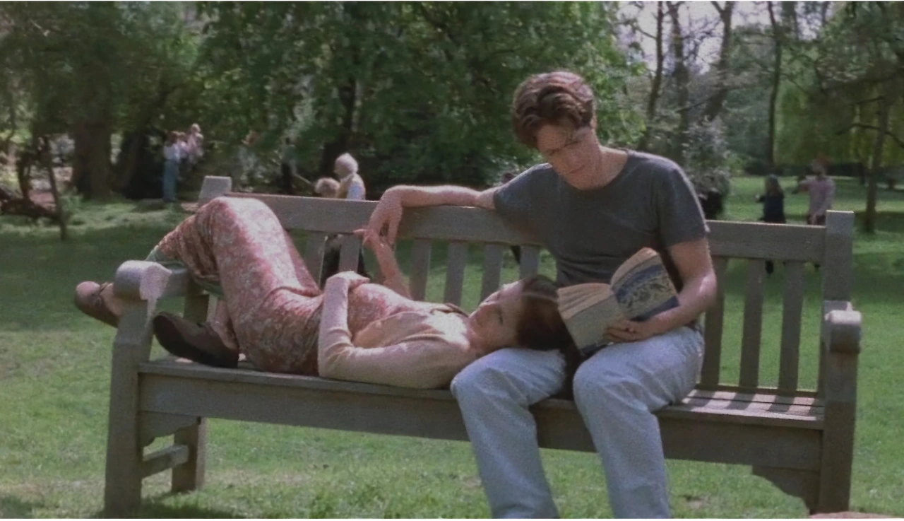 영화 '노팅힐' 마지막 장면. 공원에서 평범하게 데이트하는 모습. 아마 태중의 아이에게 책을 읽어주고 있나 보다.