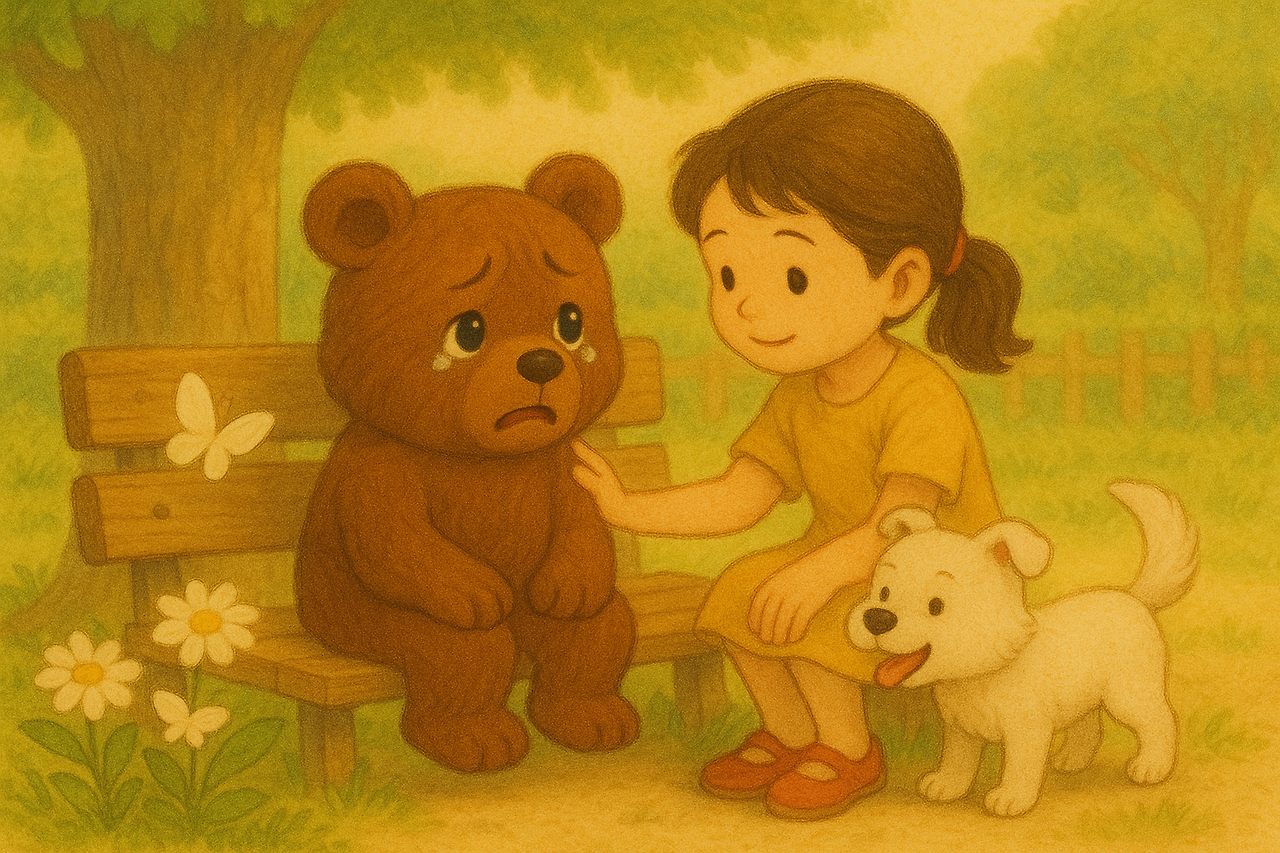 친구들과 함께 고미가 노는 모습을 바라보던 사랑이는 고미가 걱정됐어요.