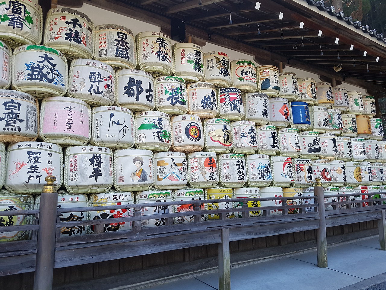 저희가 이러한 역사를 가진 마쓰오타이샤에 찾아간 이유는 하타씨라는 도래인이 교토를 부강하게 만든 과거의 흔적 중 하나를 찾아보기 위함이 아니라 술의 신을 모셨다는 신사에 대한 궁금증이었습니다. 마쓰오타이샤 한쪽에 일본 전국의 양조장에서 기진했다는 술통들을 모아놓았다는 것도 보고 싶었습니다. 대학교 1,2학년을 술과 함께 산 우리에게 충분히 흥미를 유발할만한 내력을 가진 신사이기에 꼭 한 번쯤은 보고 싶었습니다.