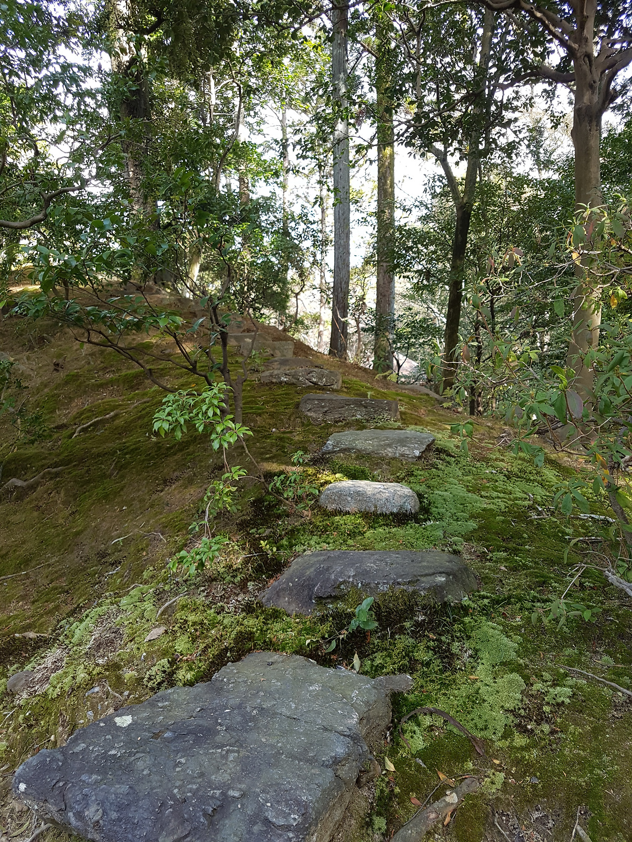 쇼카테이가 있는 언덕으로 올라가는 징검돌이 놓인 길