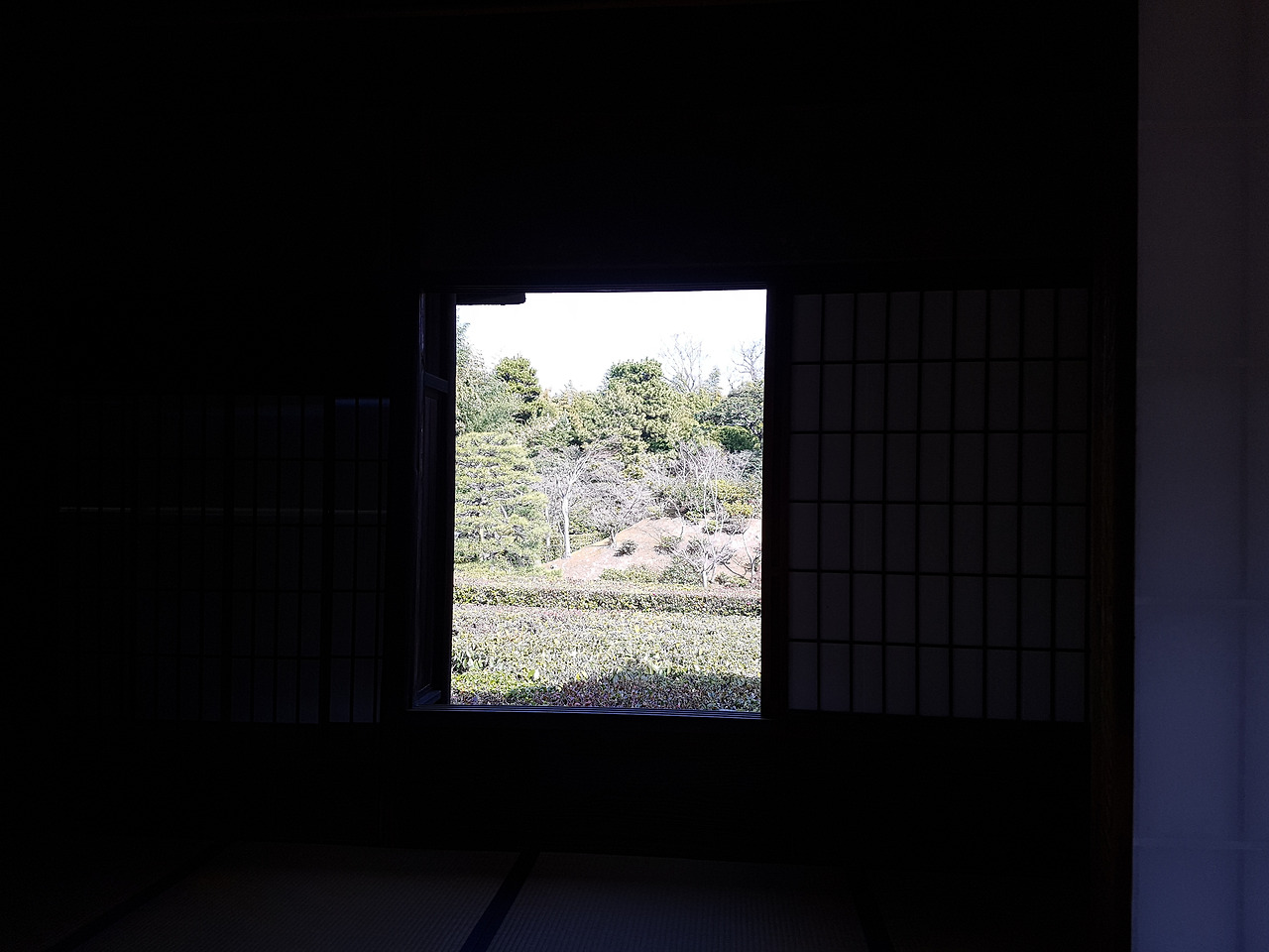 좌측은 겟파로 봉당의 안쪽 다다미방에서 북쪽을 바라본 사진, 우측은 봉당의 오른쪽에서 연못을 바라본 사진
