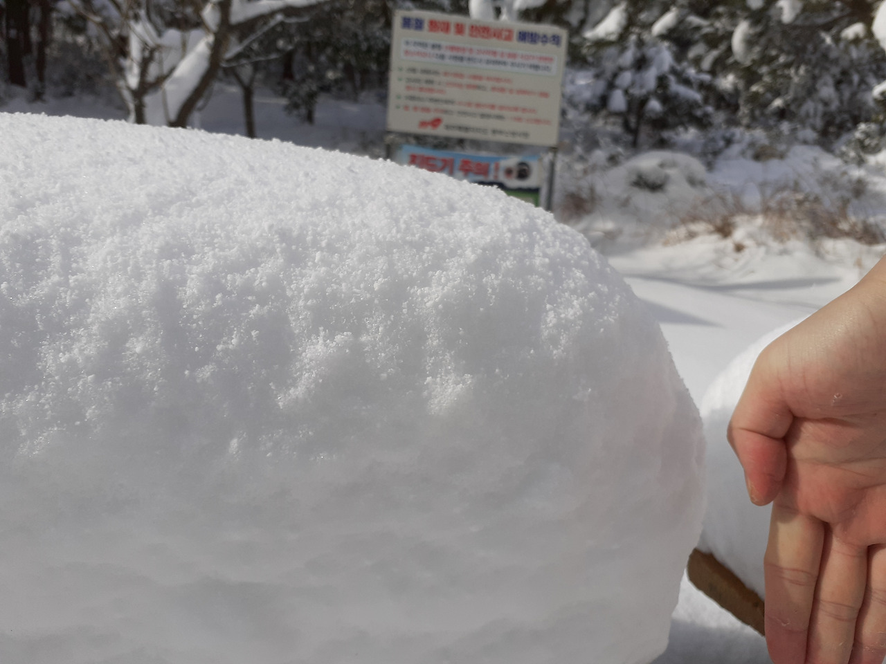 저는 여행 당시 신발을 등산화가 아닌 런닝화를 신고 왔습니다. 그리고 그 런닝화는 밑바닥은 닳을 대로 닳아 신발 밑창의 무늬가 사라져 있는 신발이었습니다. 솔직히 아무리 겨울이라지만 제주에 폭설이 올 줄 누가 상상이나 할 수 있었겠습니까? 그것도 종아리 이상까지 쌓일 정도라니. 절대 생각 못할 겁니다. 눈 자체가 온다는 예보가 있어서 방설 준비는 해갔지만, 이 정도 신발로도 어떻게든 될 것이라고 생각했습니다.