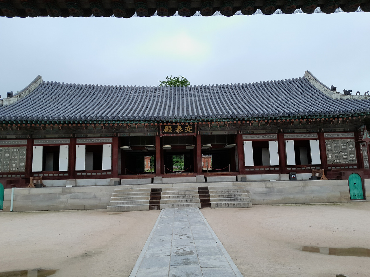 이름에 담긴 뜻이 깊으나 전혀 쉽지 않습니다. 그래서 저는 가끔 정확한 해석은 아니나 저만의 해석을 이곳에 찾아온 이들에게 말해주곤 합니다. 왕의 침전인 강녕전에서 왕비의 침전인 교태전까지는 어도가 나있습니다. 조선시대 왕과 왕비의 가장 중요한 책무 중 하나는 후계자를 낳는 일이었습니다. 각각의 침전으로 길이 있는 것은 이상한 일이 아니지요. 그리고 조선을 대표하는 양과 음은 왕과 왕비였습니다. 조선의 하늘은 왕이었고, 조선의 땅은 왕비였습니다. 그들의 사귐을 의미하는 곳이 왕비의 침전 이름? 어머(><). 그 이상은 말이 필요 없겠죠.