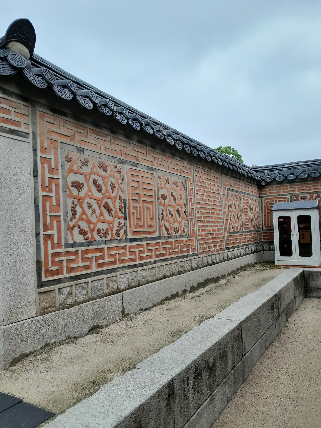 이제 아미산을 돌아 동편으로 빠져나갈 차례입니다. 그 동편으로 빠져나가는 담벼락에는 각종 그림들이 그려져 있죠. 꽃담입니다. 밋밋하게 벽돌이나 돌로 그저 담을 쌓아 놓는 것이 아니라 담에 다양한 무늬를 넣어 장식하는 방법입니다. 교태전 뒤편의 꽃담은 대부분 빙렬문 사이에 꽃과 나비를 그려 넣는 것으로 꾸몄습니다. 아미산을 거쳐 넘어온 자연의 향기가 꽃담까지 이어져 여운을 남기는 것이죠. 흡족한 마음으로 꽃담을 스윽 살펴보고 뒷짐 진 채로 걸음을 천천히 옮기면 조화와 미(美)가 가득한 교태전은 다 본 것입니다.