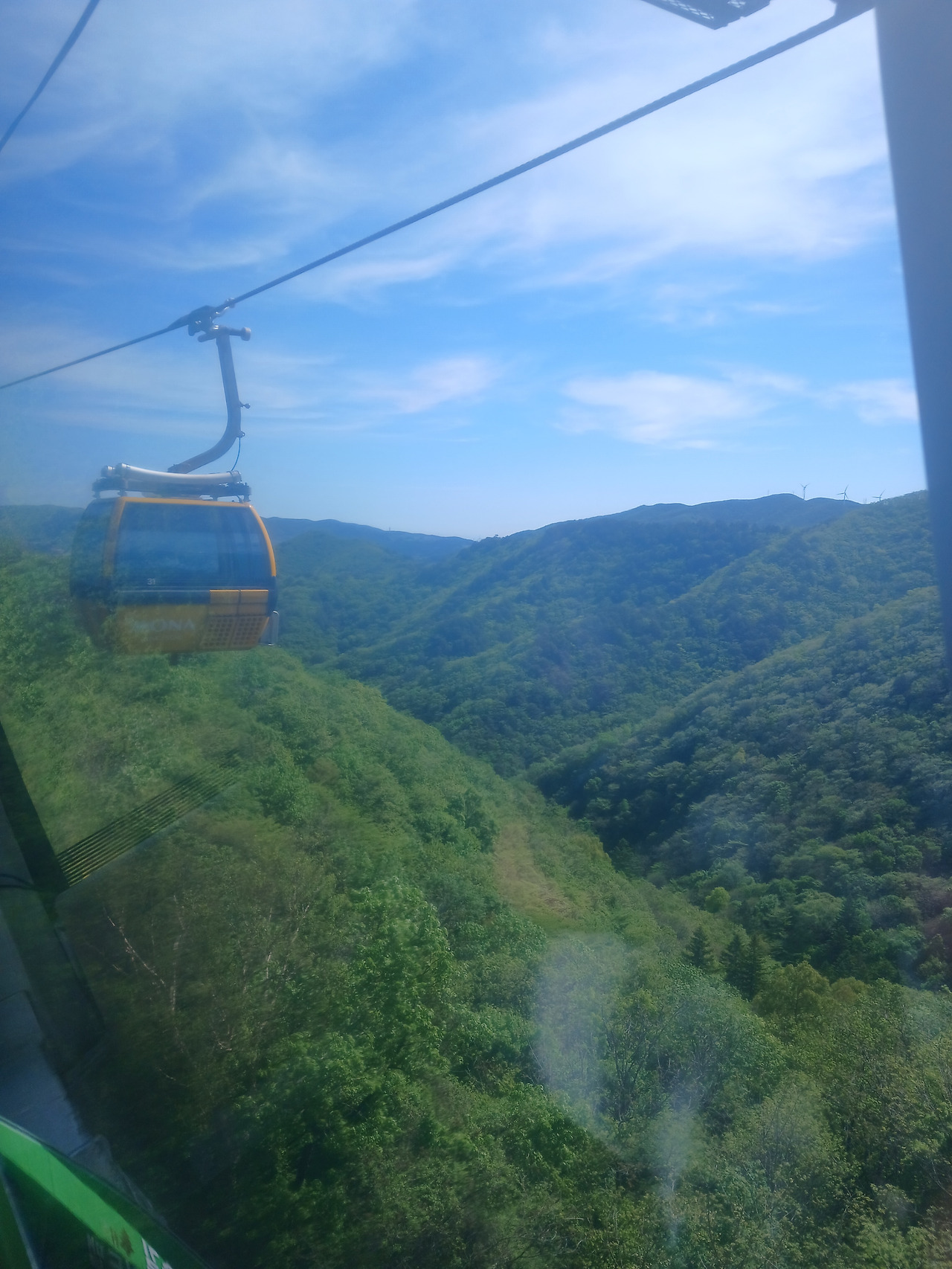 아침을 먹고 잠시 누워 있다가 슈퍼 J인 제 일정에 맞추어 움직이기 시작했습니다. 시작은 대관령면으로 넘어가는 언덕길 드라이브였습니다. 진부에서 대관령으로 넘어가는 길은 크게 두 가지로 잘 닦인 직선도로와 구불구불 언덕도로입니다. 저희의 첫 목적지인 용평리조트는 언덕도로와 가까워서 언덕도로를 타게 되었습니다. 맑은 공기에서 보이는 푸른 하늘과 천천히 지나가며 보이는 산의 푸른 능선은 피곤한 친구들의 눈을 번쩍 뜨이게 만들었고, 모두가 여행 왔다는 감탄사를 뱉어내게 만들었습니다. 공기의 선선함은 드라이브 내내 창문을 열게 했죠.