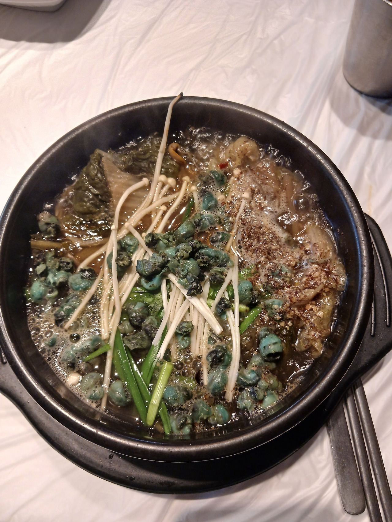 고향 친구들이 찾아왔습니다. 오산에서 차로 안 막힌다면 두 시간, 새벽 다섯 시에 출발한 친구들은 7시에 도착했습니다. 5월의 봄이 완연했는데 이때도 분명 해지면 추우니까 바람막이는 필수라고 이야기했습니다. 다들 잘 챙겨 왔습니다. 새벽에 일어나서 피곤해 보였지만, 온 김에 열심히 구경하자는 마음으로 조금 쉬고 바로 움직였습니다. 아침은 ‘친정 엄마’에서 다슬기 해장국을 먹었습니다. 다슬기가 살짝 비린 맛이 있어 단짠단짠에 익숙해진 사람들에게는 잘 맞지 않았습니다. 하지만, 자연주의 입맛(?)을 가진 사람들은 다 좋아했습니다.
