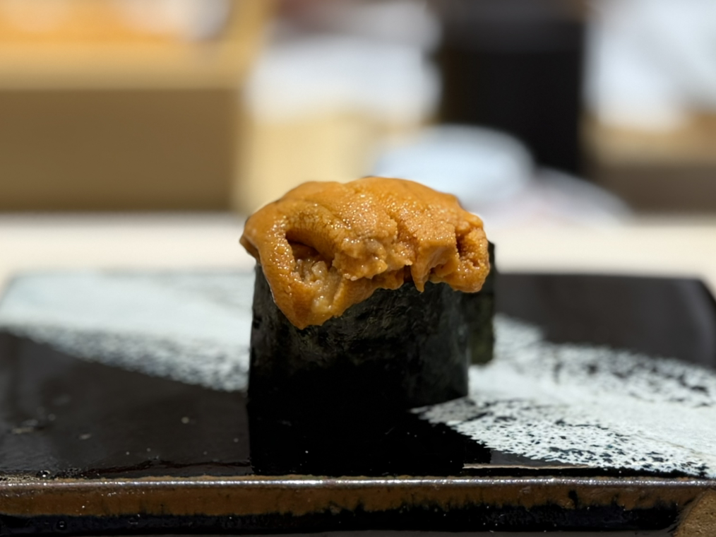 우니는 군더더기 없는 단맛과 바다의 풍미가 조화를 이뤘다. 샤리를 적게 잡은 덕에 입 안에서 녹는 질감이 더 또렷했다. 절제된 선도와 양감 모두, 스즈메의 감각을 보여주는 한 점이다.