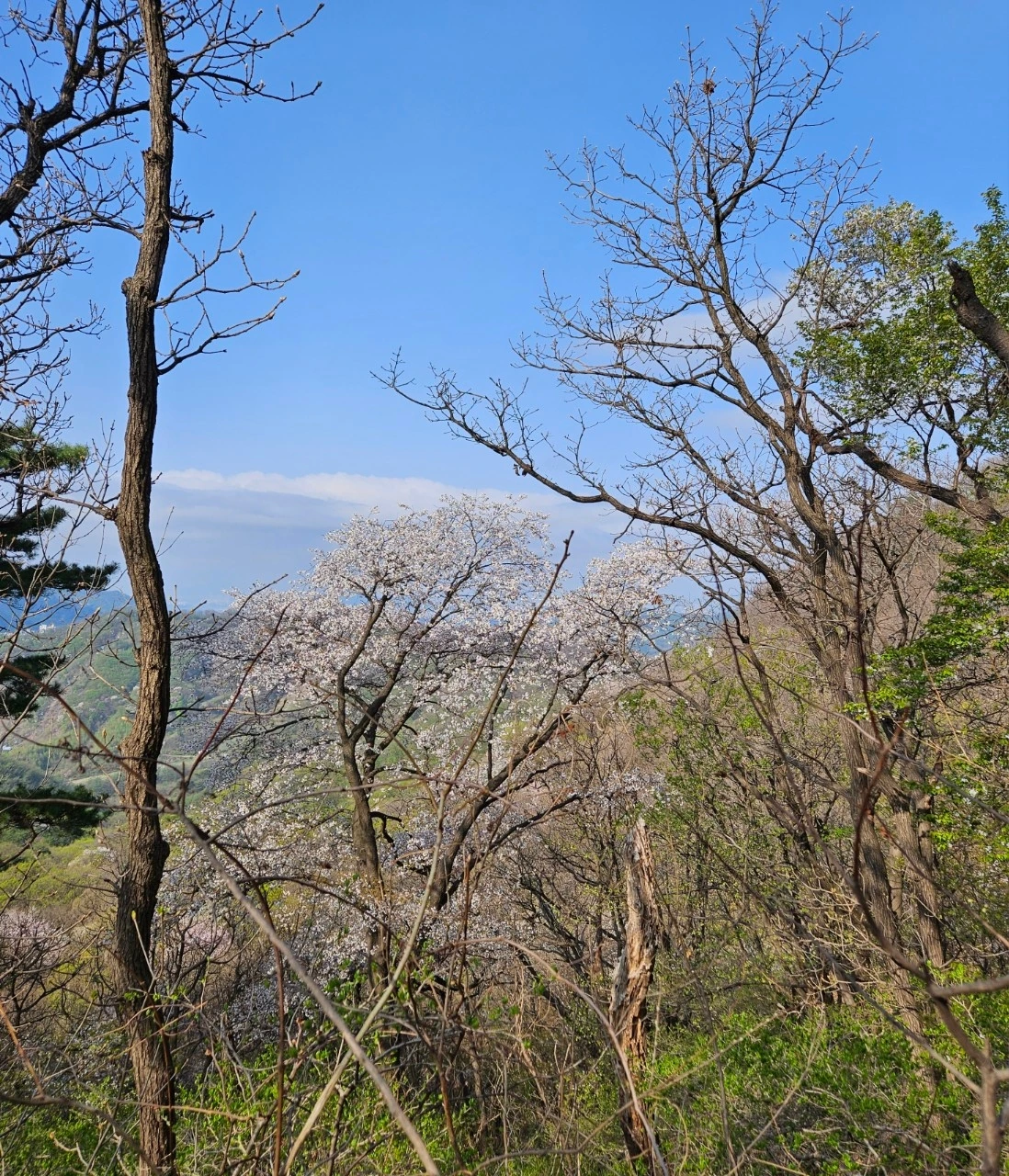 [아침 바람]하늘 높이 어깨동무바람 따라 너울 춤추고늦은 봄 따가운 햇살그늘을 만들어 선물하고부둥켜안다 못한 긴 팔 아래로 아래로 드리운다. 산책길 긴 호흡 가다듬고오솔길 안내받아 길 재촉한다.