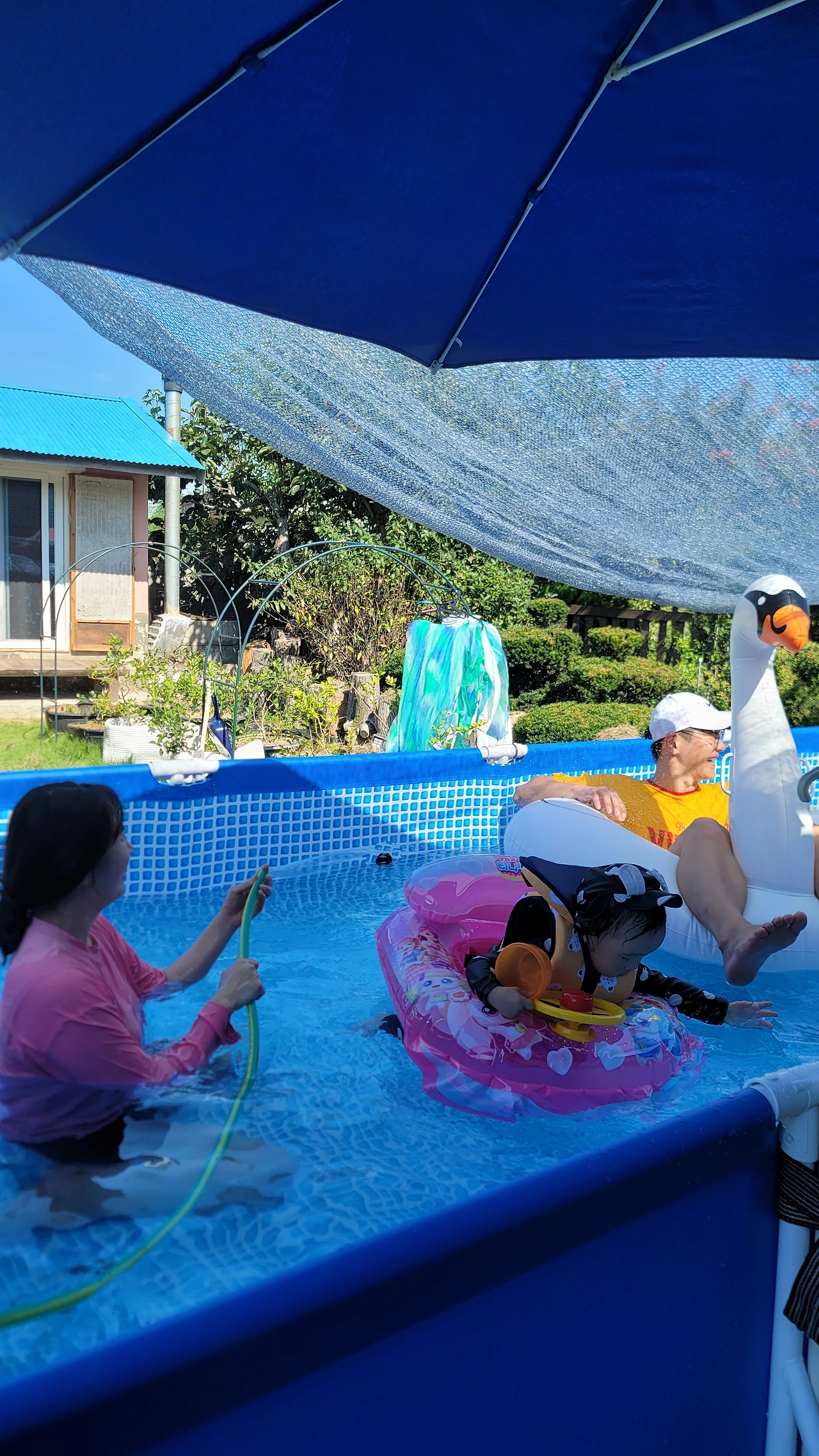 우리 부부가 준비한 아이를 위한 수영장은 좋은 추억을 남겼으리라. 귀하고 값진 새 생명이 기다려진다. 할아비에게 이보다 더 큰 선물이 또 있겠는가. 기쁨의 포옹 장면은 두 가족에게 즐거움으로 채워진다.
