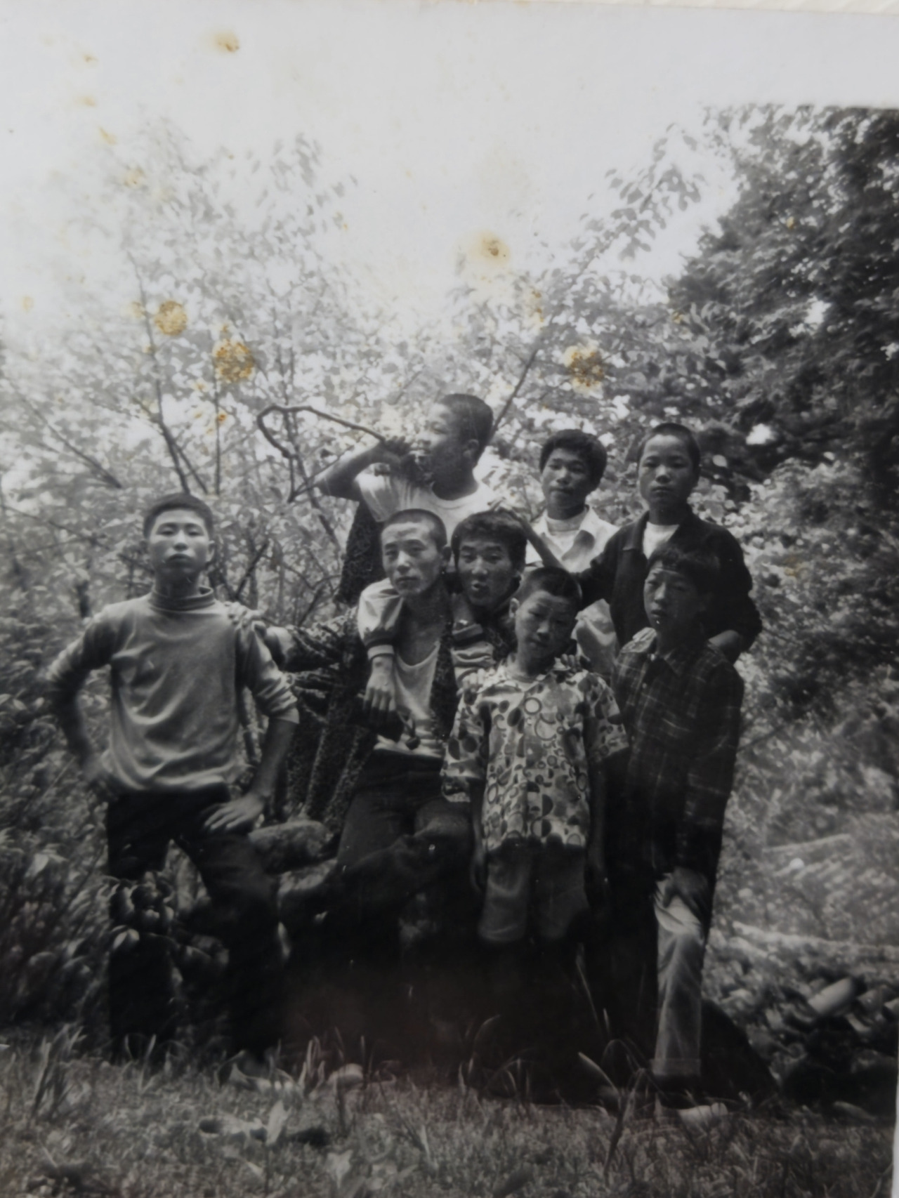 예식이 끝나고 식당으로 자리를 옮겨 그동안 사는 이야기로 이어진다. 이십 대 때 비용을 줄이기 위해 아저씨의 셋방에서 몸을 부대끼며 서너 명이 더부살이하던 시절이랑, 또래인 사촌 형을 따라 고향마을 산 중턱 ‘수암정’에서 찍은 사진 이야기가 술안주처럼 올랐다. 처음 안 사실이다. 십 년 이상 차이나는 분과 어울려 찍은 사진 이야기에 호기심이 발동한다. 휴대전화에 담긴 빛이 바랜 흑백 사진은 칠십 년대 초등학교 다닐 무렵으로 보인다. 덩치 큰 형들 틈바구니에 꼬마가 끼어든 모양새다.