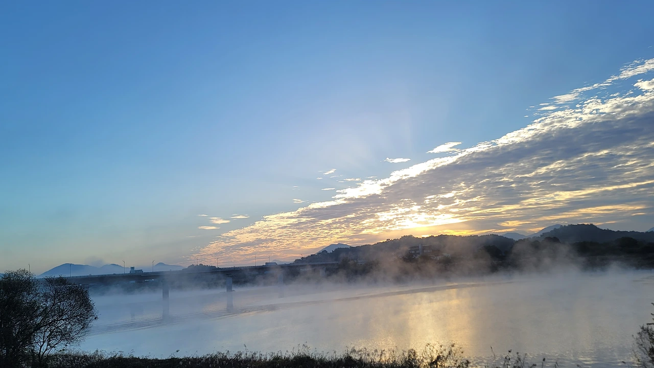 물안개 피어오르는 강 언저리