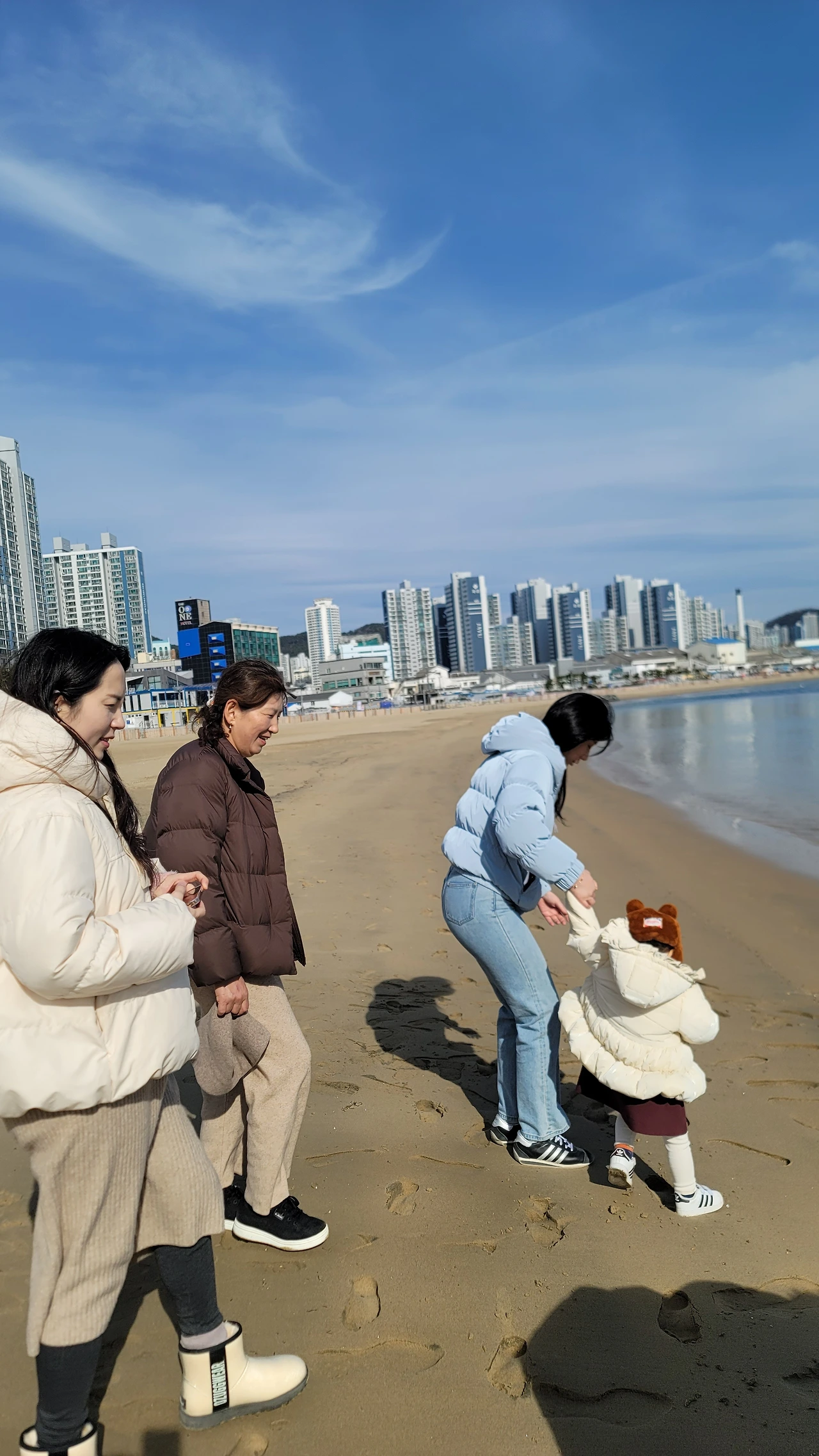 포근한 햇살의 기운을 동반자 삼아 겨울 백사장을 찾았다. 모래에 어른 손바닥으로 가려지는 작은 발자국을 만들고 두 손으로 만지는 감촉을 반복한다. 한 줌 쥐어 할아비 할미에게 던지는 시늉이다. 강한 바람으로 더 나아갈 수 없어 돌아보고 돌아보며 발길을 돌릴 뿐이다.