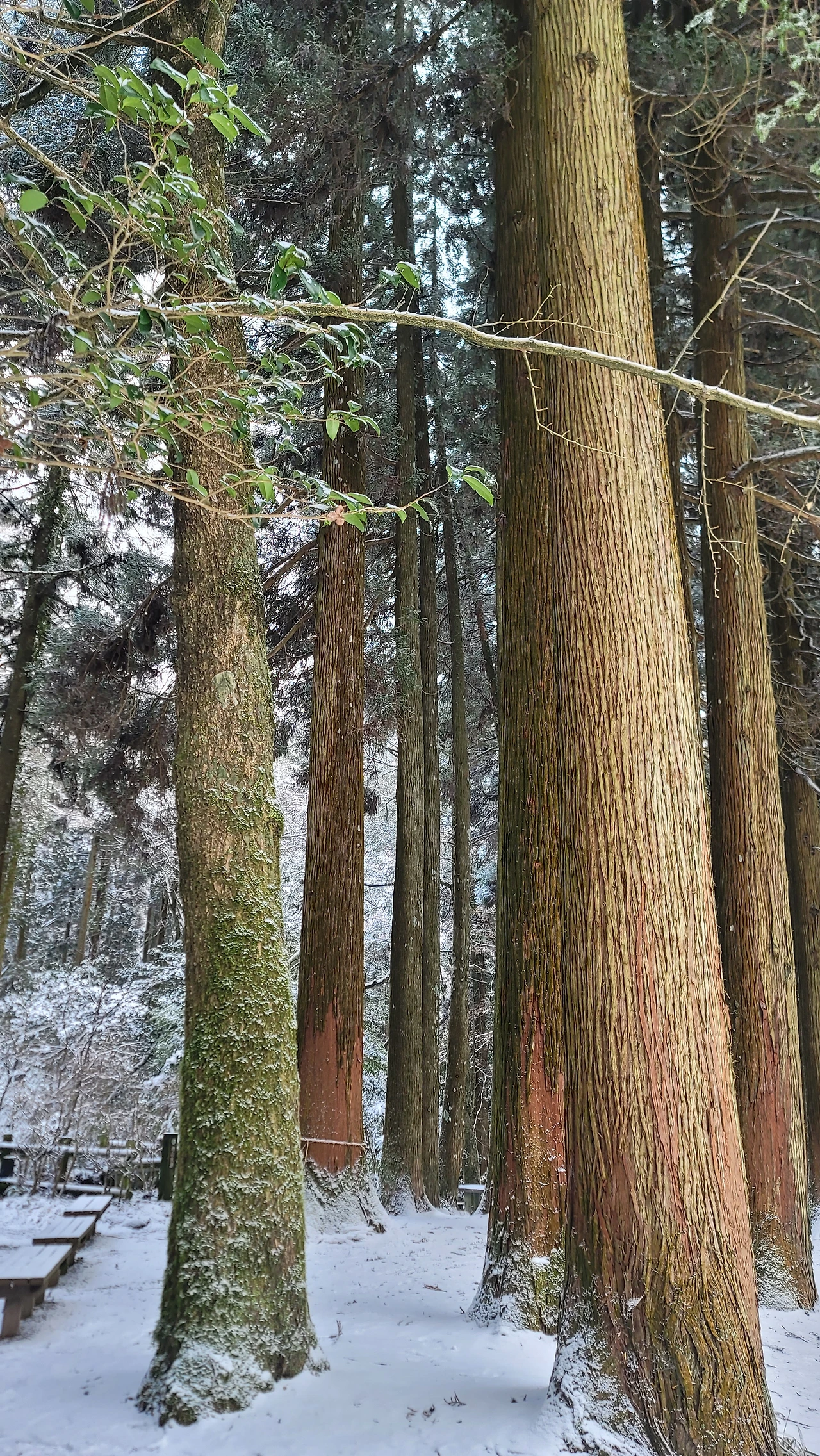 유후인과 구로가와를 찾아간다. 화산으로 형성된 지역이라 넓은 평원이 예사롭지 않다. 끝없이 펼쳐진 삼나무 숲과 멀리 흰 평원이 우리를 반긴다. 차창 밖의 백설은 두 눈에 담고 카메라에 저장시킨다. 한겨울에도 눈 구경이 어려운 일행에게 발목이 잠길 정도의 눈이 내렸다. 이런 덤이 어디 있을까. 생각지 못한 눈 구경이라니. 사진만 보면 북해도에 다녀왔노라 해도 믿을만하다. 공원의 홍매화는 꽃망울을 터트렸고 간밤에 눈이 어우러진 두 계절을 만끽한다. 카메라의 셔터를 연신 가동하는데 옆에서는 눈을 뭉쳐 격투가 벌어진다. 어릴 적 고향에서 뛰놀던 기억에 빠져든다. 타향에서 만나 함께한 지 강산이 다섯 번이나 바뀌는 세월이 흘렀다.