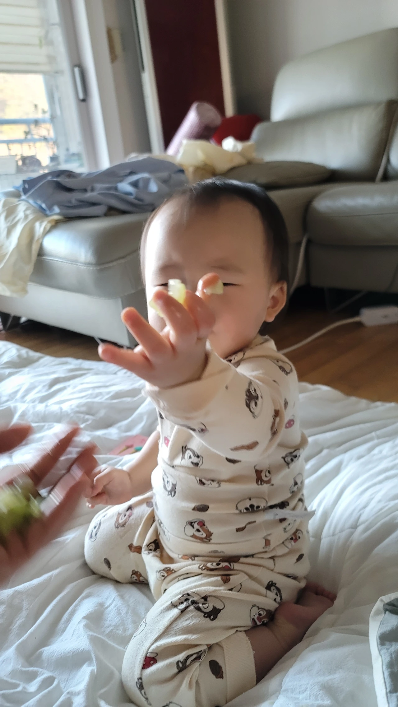 해가 뜰 무렵 방에서 나온 손주는 거실 소파에 상체를 기울여 몸을 밀어 올린다. 이내 거실 바닥을 네 곳을 밀착시켜 기어 다닌다. 허리에 양손을 바쳐 걸음마를 시키는데 이내 궁둥이가 내려앉는다. 혼자 서고 걷기에 시일이 더 필요한 모양이다. 과일 모형 장난감으로 시간을 보내다가 그림책을 집더니 손을 들어 도움을 요청한다. 아들 녀석이 읽어 주는데 마음에 들지 않는지 엄마에게 책이 넘겨진다. 익숙한 목소리가 편안함을 주는 게 당연하다.