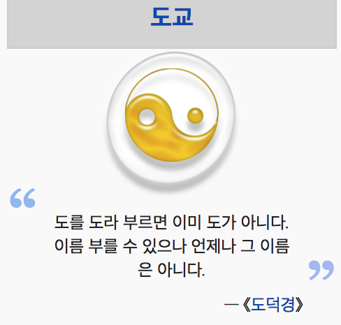 중국에서 우주의 만물에 대하여 생각한 최초의 사람으로, 그가 발견한 우주의 진리를 도 道라고 하였다. 그 도를 중심으로 하는 신앙을 도교라고 한다.