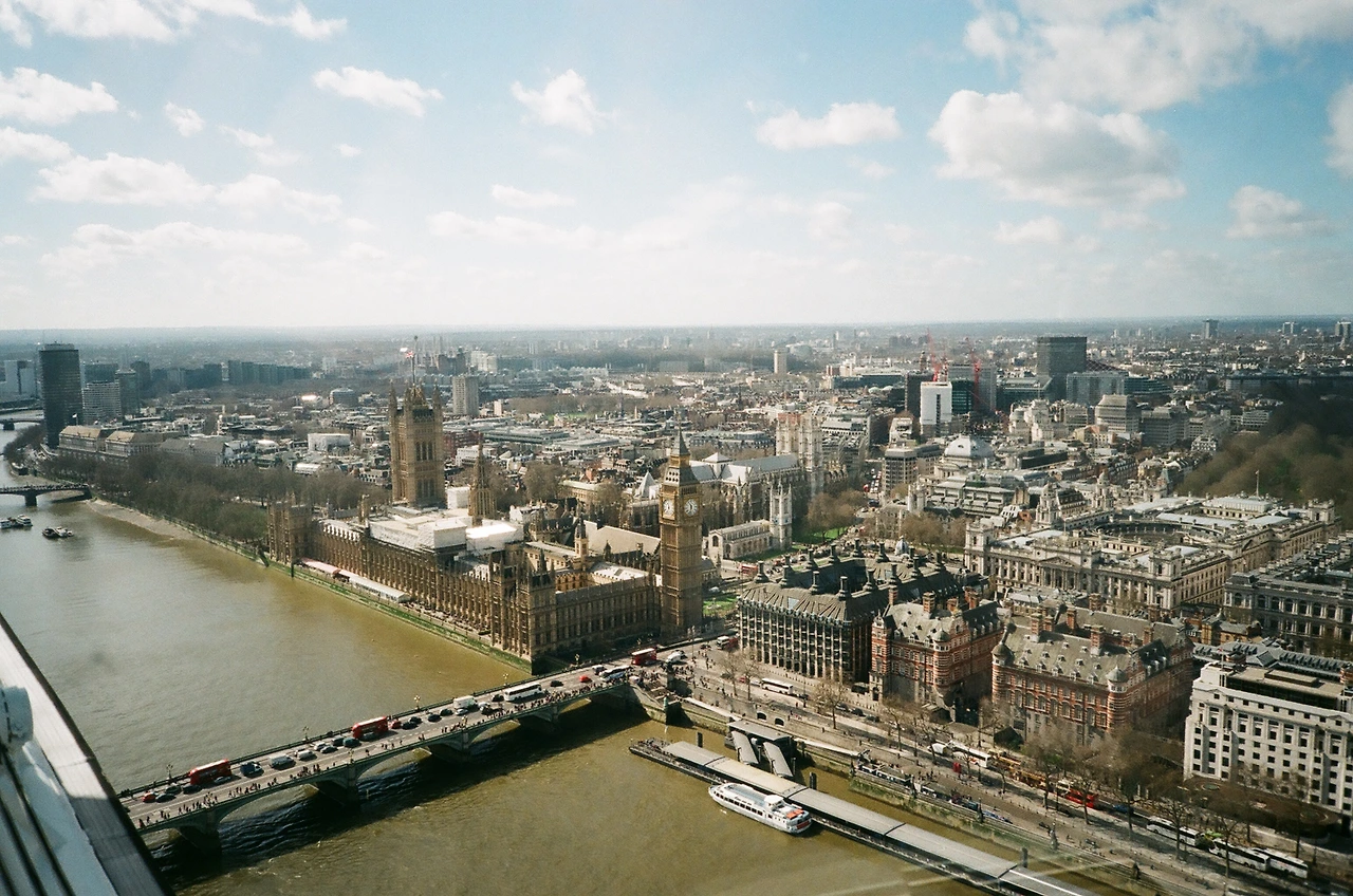빅벤이 런던을 모두 내려다보고 템즈강이 흐르며