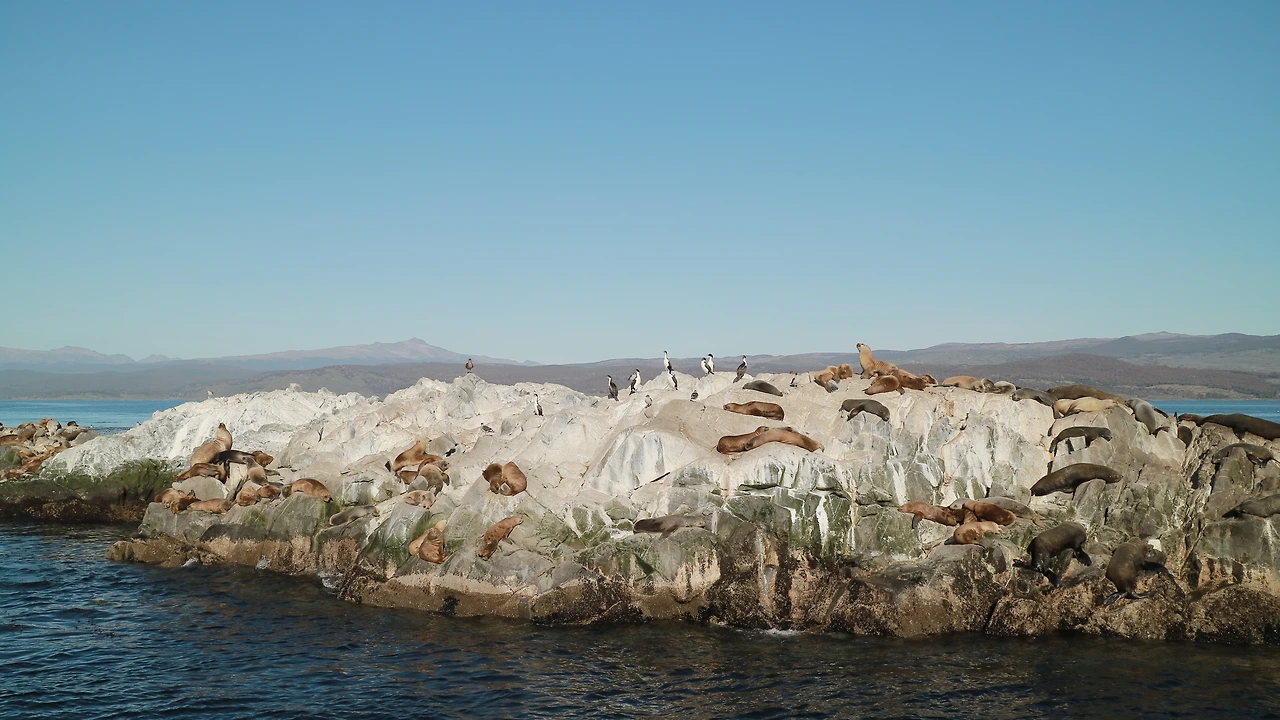 두 번째로 도착한 바위섬. 처음에는 섬에 무엇이 있는지 보이지 않았는데, 자세히 보니 바다사자들이 일광욕을 하는 중이었다. 비글해협은 대서양과 태평양이 만나는 곳인데다, 해협 사이사이 수많은 바위섬들이 있어 동물들에게는 지상낙원이다.