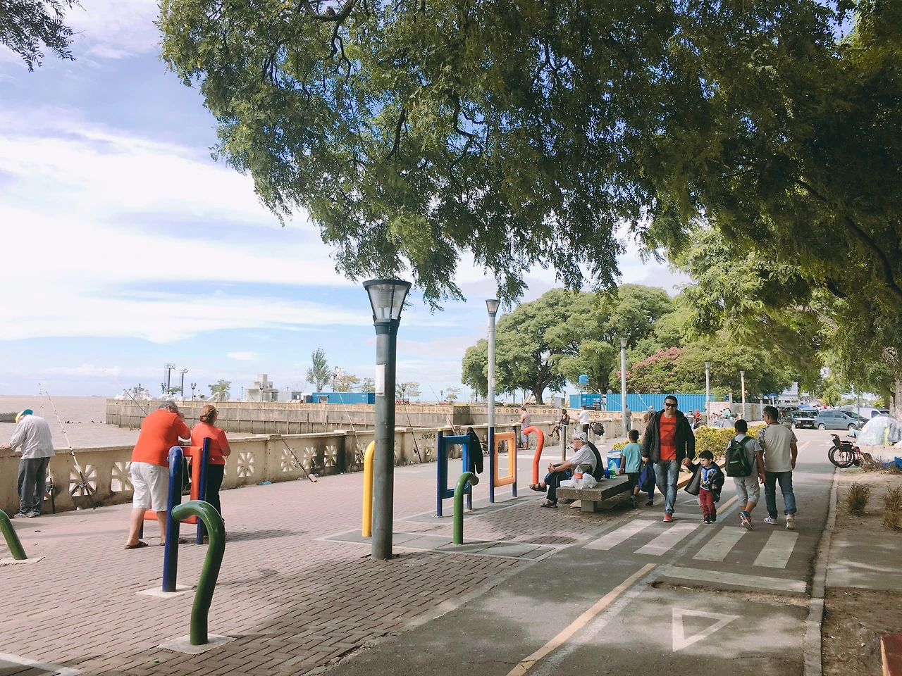 해맑은 햄버거를, 나는 초리조 샌드위치를 주문했다. 채소도 듬뿍, 소스도 듬뿍! 간이 테이블에 자리를 잡고 다 먹을 때까지 망중한을 즐겼다. 초리조 샌드위치의 맛은 더할 나위 없이 맛있었다. 그 순간의 편안함과 안도감은 더 좋았다. 낚싯대를 드리우고 앉아 있는 사람들, 캐리어를 끌고 오가는 사람들, 조깅하는 사람들, 점심 한 끼를 해결하러 나온 사람들...