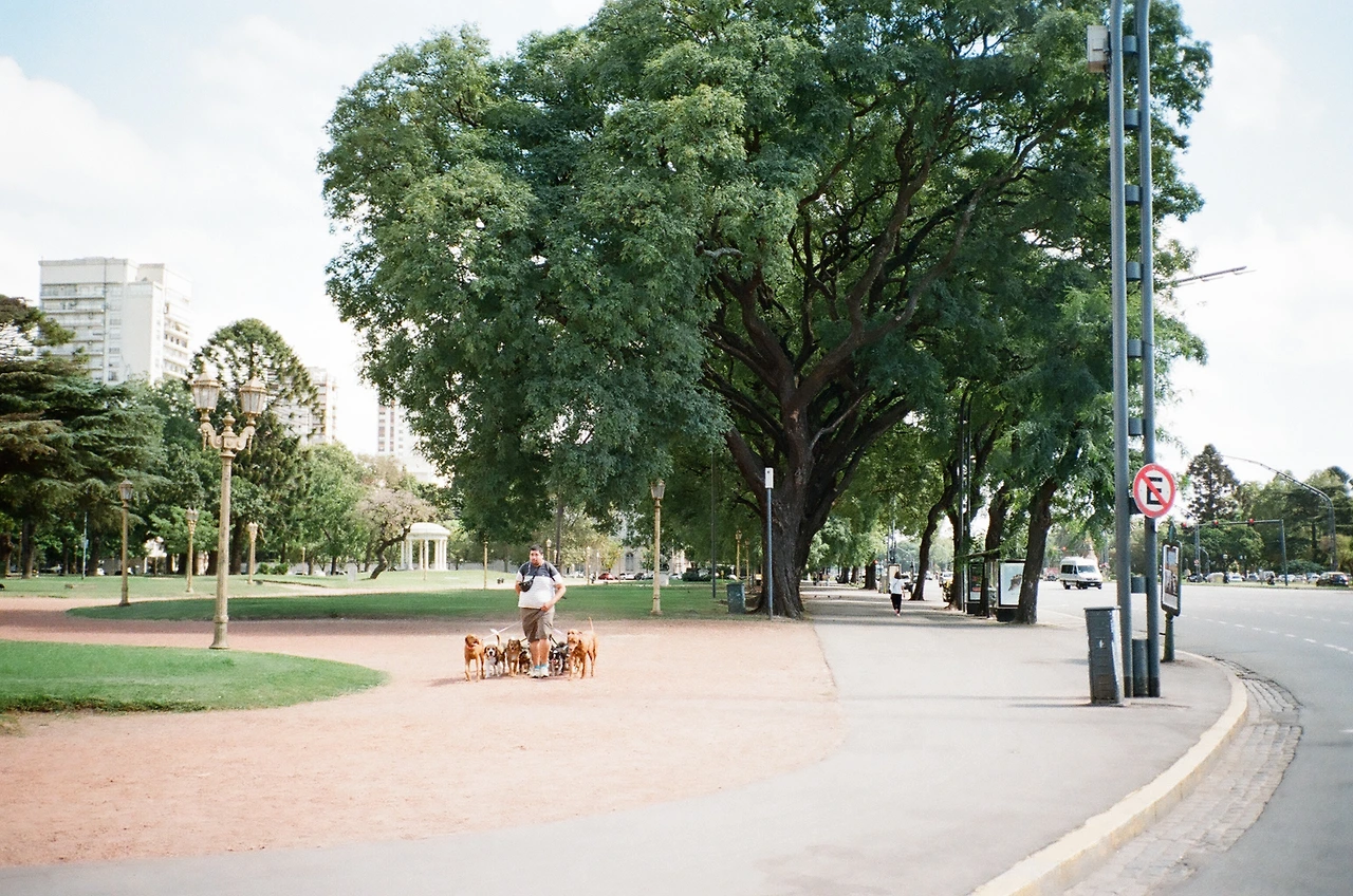 공원이 가까워질수록 도로가 넓어졌다. 공원길을 따라 걷는데 강아지 10마리를 데리고 산책을 나온 아저씨도 보였다. 아르헨티나에만 있는 직업*, '개아범'. 개를 무척 사랑하는 아르헨티나 사람들은 집집마다 개를 키운다. 사람들이 모두 집을 비운 낮에, 혼자 있을 개들이 심심하지 않도록 '개아범'에게 산책을 맡기는 것이다. 산책을 하다 쉬는 시간인지, 개들은 커다란 나무 밑 그늘에 누워 모두 잠을 자고 있었다. 참, 따뜻한 풍경이다.