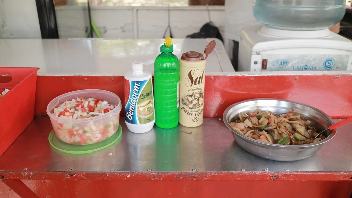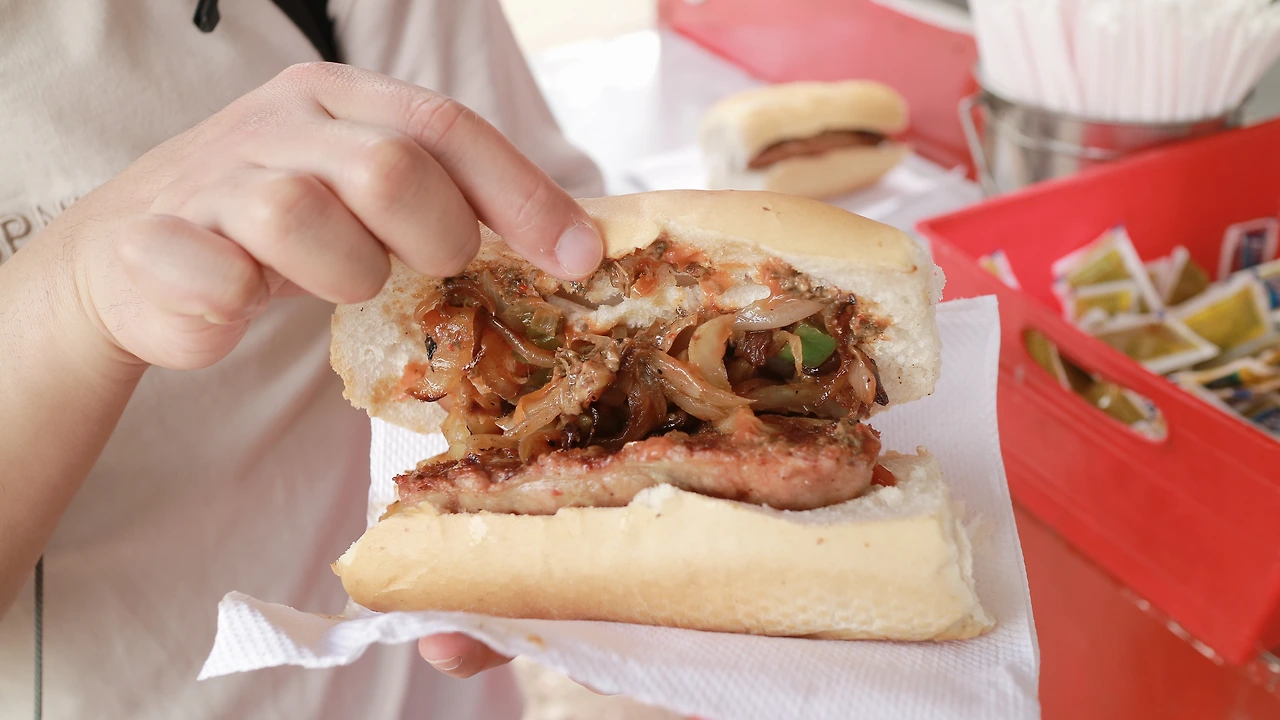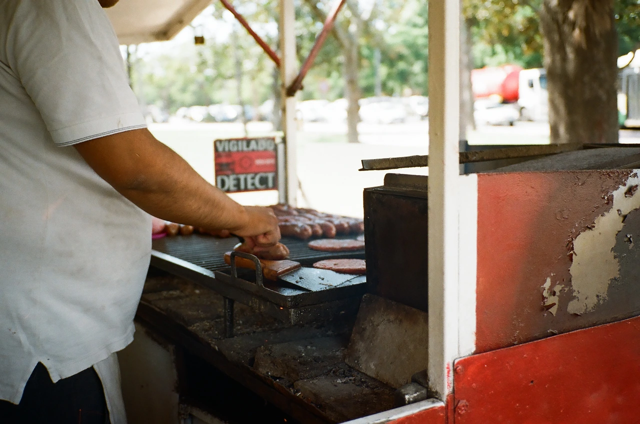 공원 쪽으로 길을 건너자, 이번엔 코를 자극하는 이 맛있는 냄새! 우리는 누가 먼저랄 것도 없이 냄새의 진원지를 찾아 나섰다. 멀지 않은 곳에 보이는 빨간 간이 상점! 바로 저곳이었다. 아무런 표시도, 간판도, 메뉴도 없는 이곳! 그릴 위에 노릇노릇 익어가고 있는 것들이 직접 메뉴를 말해주는 곳. 역시, 초리조 가게였다. 망설일 것도 없이 초리조 샌드위치 2개를 샀다. 와인도 있고, 초리도 샌드위치도 있으니 점심까진 거뜬하겠다!