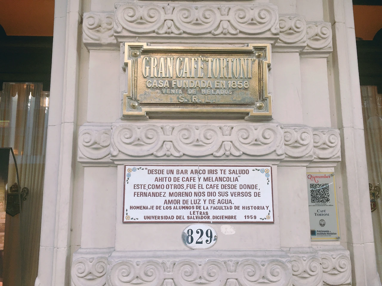 1858년에 지어진 카페 토르토니는 아르헨티나의 화려한 전성기와 함께 오픈했다. 프랑스인이 이 카페를 처음 만들었는데, 자신이 좋아했던 파리의 카페 Tortoni를 모티브로 지었다고 한다. 토르토니가 연 이후, 이곳은 당대 유명한 예술가와 학자들의 만남의 장소가 되었는데 호르헤 루이스 보르헤스는 물론이고, '여인의 향기'로 유명한 탱고 가수 카를로스 가르델, 아인슈타인, 힐러리 클린턴 등 전 세계 유명인사들이 다녀간 곳이 되었다.