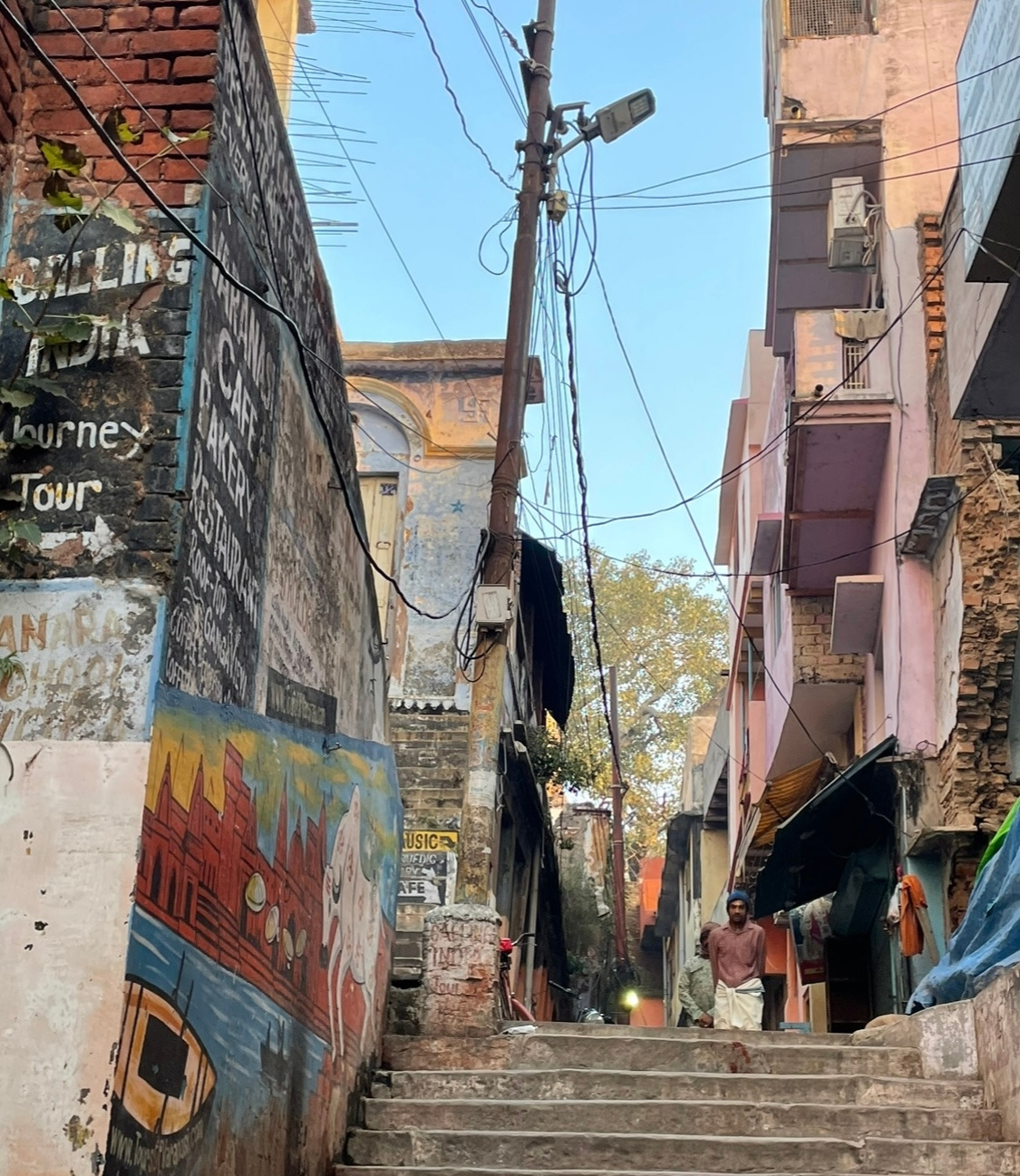 바라나시를 걸었다. 2월의 인도 햇살은 적당히 따뜻했고, 가끔 갠지스강에서 불어오는 바람은 기분 좋게 시원했다. 미로 같이 보였던 골목길은 하루가 지나자 숙소 주변을 혼자 걸을 수 있을 만큼 익숙해졌다. 강가를 벗어나면 ‘여행자의 거리’라고 불리는 좁은 골목들이 꼬불꼬불 이어지고 작은 상점들, 라씨와 짜이를 파는 가게들, 음식점들이 나타난다. 나는 혼자 느긋하게 목적지도 없이 골목을 걸었다. 곳곳에 배설물과 쓰레기가 쌓여 있고, 악취가 나기도 했다. 커다란 소와 개가 골목을 가로막고 엎드려 있기도 했다. 길거리 음식은 청결해 보이지 않았다. 카페에서도 손님이 음료를 마시며 사용한 컵을 물로 대충 헹궈내기만 하고 다시 짜이를 담아 팔고 있었다. 아름답고 깨끗한 환경만을 기대한다면 이곳에서 견디기 힘들 수도 있다. 그리고 이 부분은 인도에 오기 전 궁금했던 점이다. 나는 인도에 가면 어떤 마음이 들까. 이런 풍경들 속에 거부감 없이 젖어들 수 있을까. 나는 그곳에서 어떤 사람일까.