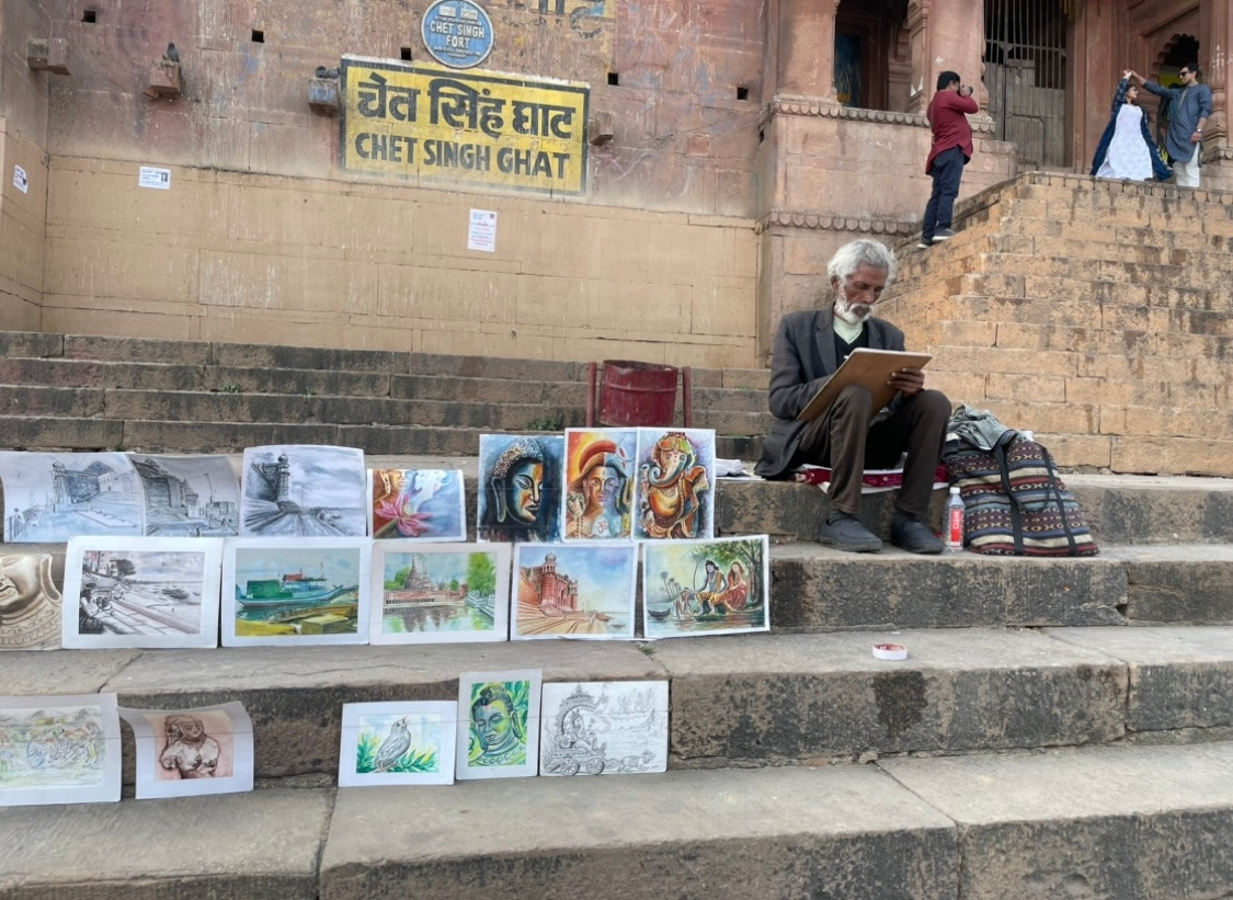 번화가를 벗어나 갠지스 강가를 걸었다. 가트를 지나 화장터를 지나 하늘과 강을 보며 걸었다. 강 위로 쏟아지는 햇볕이 따갑다 싶으면 강을 등지고 좁은 골목으로 들어가 상점을 구경하기도 하고 카페에 가기도 했다. 그러다 강바람이 궁금하면 다시 강가로 나왔다. 길을 잃을 걱정을 하지 않아도 되었다. 골목을 걷다가도 강바람 냄새가 나는 곳으로 방향을 돌리면 갠지스강이 그곳에 있었다. 강을 지표 삼아 한 나절을 걸었다. 강가에서 그림을 그리고 있는 화가를 보았다. 그는 자신의 부인도 화가인데 지금은 집에서 아이와 함께 있다고 말해주며 자신과 부인이 그린 그림을 자랑스럽게, 조금 들뜬 모습으로 보여주었다. 마음에 드는 그림들이 많았다. 큰 그림은 배낭에 넣으면 구겨질 것 같아 작은 사이즈의 그림을 한 점 샀다. 그가 신문지에 그림을 포장해 주는데 조금 서툴러 보여 내가 도와주었다. 큰 구슬을 실에 꿰어 좌판에 늘어놓고 팔고 있는 여인은 색채감이 뛰어났다. 알록달록한 구슬의 색깔들이 귀엽고 조화로웠다. 같이 걷던 일행이 그녀에게서 팔찌를 사서 함께 여행 온 우리들 모두에게 선물로 주었다. 맛있는 점심을 먹고 식당 옆에 책방이 보여 들어가 보았다. 인도어로 적힌 책은 읽을 수 없어 구경만 했고, 작고 귀여운 수첩과 책갈피를 몇 개 샀다. 평온한 오후였다.