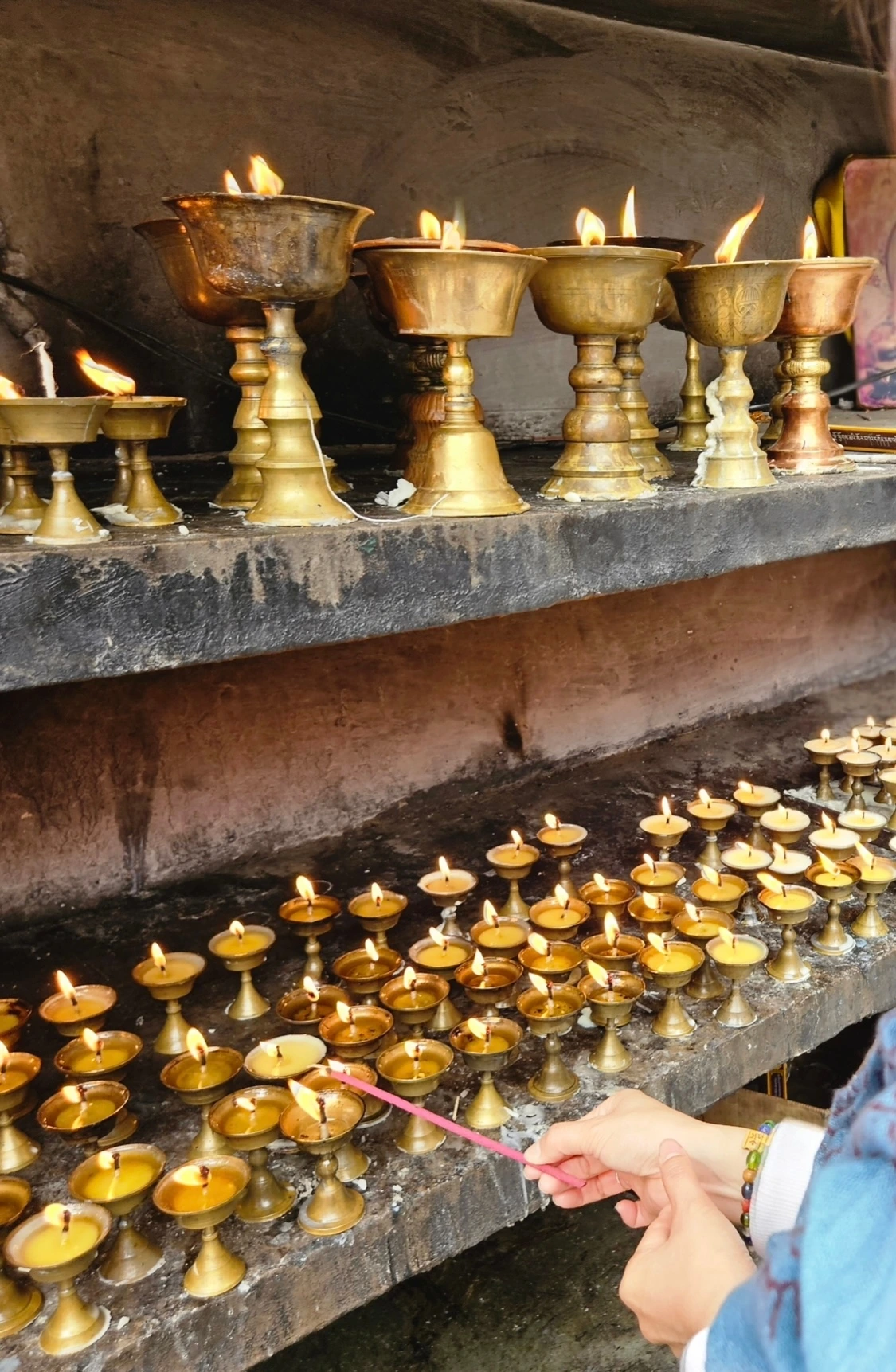 마하보디 사원에서 가장 내 눈을 사로잡은 것은 오체투지를 하는 사람들이었다. 그들은 무릎과 팔꿈치와 이마를 땅에 대고 절을 하는 동작을 하며 거의 기어 다니는 모습으로 경내를 이동하고 있었다. 한결같이 절도 있는 모습으로, 전혀 아픈 기색도 없이 규칙적으로 움직이며 수행하고 있었다. 이 기도를 새벽부터 밤늦게까지 이어서 하기도 하고, 오체투지를 위해 절에 상주하면서 몇 달씩 지내는 수행자도 있다고 한다. 실제로 우리가 묵은 숙소에는 스위스에서 오신 한국분이 계셨는데 마하보디 사원에서 수행을 하기 위해 몇 개월동안 이곳에서 지낸다고 하셨다.