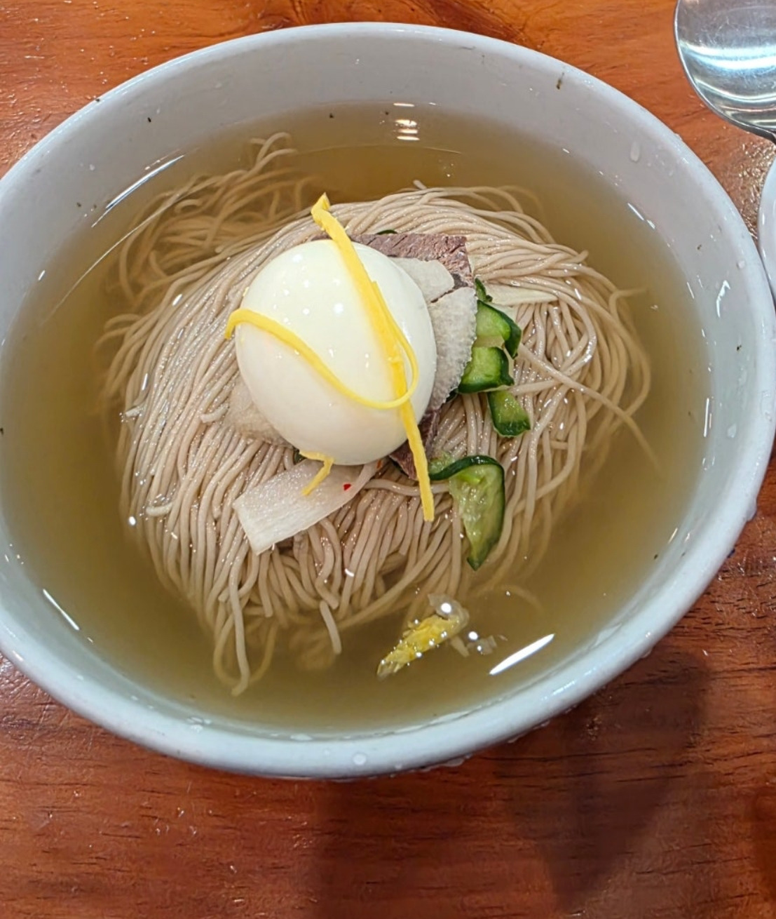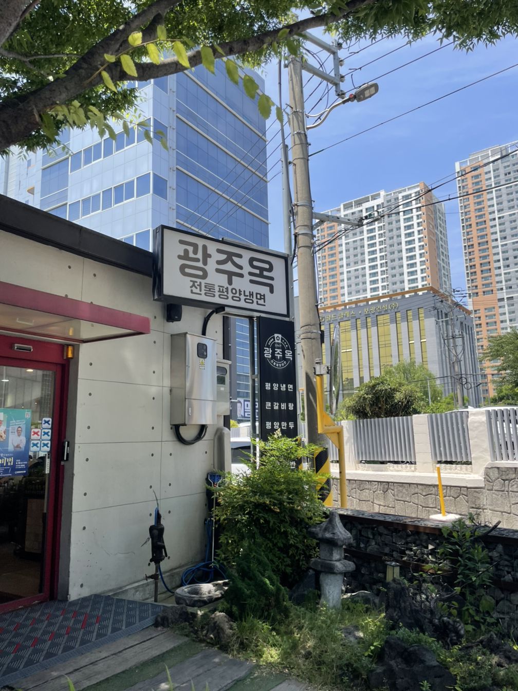 초여름 광주의 낮은 더웠지만, 습한 기운은 많지 않아 그늘을 찾아 걸으면 견디기 힘들 정도는 아니었다. 1947년부터 영업했다는 ‘광주옥’에서 담백한 평양냉면을 한 그릇 먹고 여행을 시작했다. 백석의 시 ‘국수’의 구절이 식당 벽에 적혀 있었는데 ‘이 히수무레하고 부드럽고 수수하고 슴슴한’ 평양냉면은 광주의 첫인상처럼 담백했다. 지인이 추천해 준 국립아시아문화전당까지는 지하철을 이용했다. 건물은 규모가 굉장히 컸고 볼만한 전시가 많았다. 사람들은 멋진 건물 이곳저곳에서 휴식도 하고 책도 읽고 전시를 관람하며 자신의 시간을 보내고 있었다. 나는 ‘애호가 편지’와 ‘이이남의 산수극장’을 훑어보고 숙소 쪽으로 걸어서 이동하기로 했다. 가는 길에 펭귄마을 근처에 있는 작은 책방 ‘러브앤프리’에서 박준 작가님의 신간 시집 ‘마중도 배웅도 없이’를 구입했다.