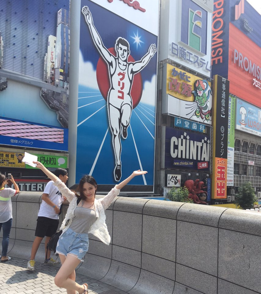 한국 거리의 간판들이 지나치게 어지러운 네온사인으로 조경을 어지럽게 하여, 간판 정리 정책이 강화된 적이 있다. 그러한 정책이 무색할 만큼 오사카의 간판들은 그 독특함과 미친 존재감으로 시선을 압도한다. 특히 에비스바시의 글리코 제과점의 옥외 간판은 이 지역의 트레이드 마크다. 너도나도 두 팔 벌리고 있는 “글리코상” 앞에서 자신 있게 겨드랑이를 들고 포즈를 취할 수 있는 용기가 필요하다. 나 역시 에비스바시에서 기념사진을 찍고 있는데, 한 젊은 남성이 내게 서투른 한국어로 말을 걸었다.