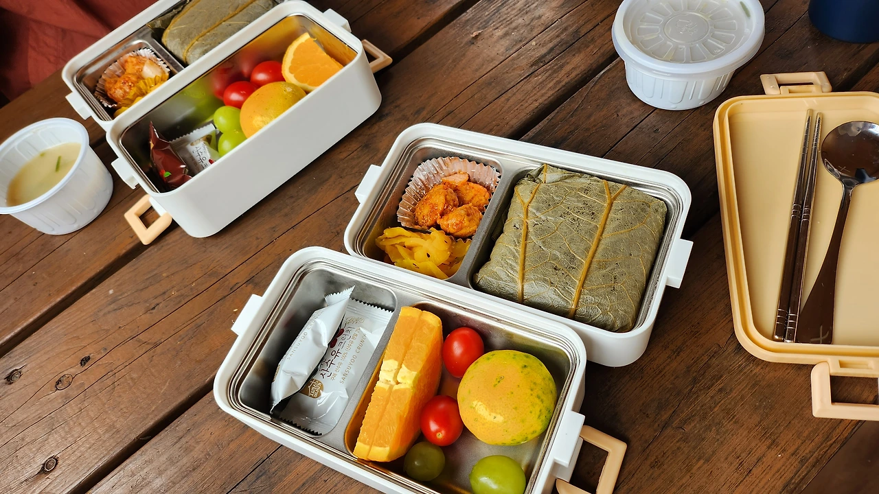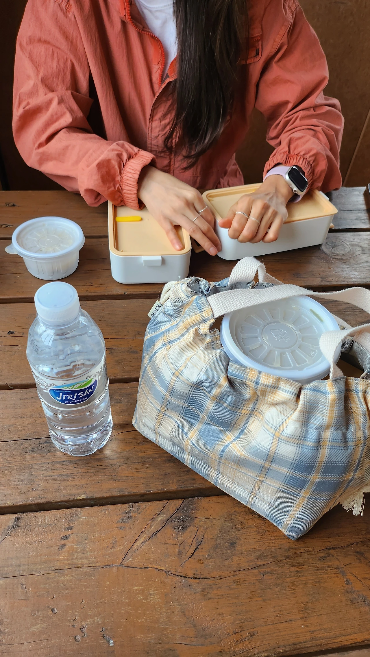 산을 내려오는 길에 우연히 지리산 국립공원 측에서 제공하는 '내 도시락을 부탁해'라는 서비스를 보았다. 말 그대로 등산객에게 도시락을 제공하는 행사인데, 원칙적으로는 미리 예약하는 것이지만 여분이 남았다는 말을 듣고 즉시 입금 하여 마지막으로 2개의 도시락을 받을 수 있었다. 등산로 바로 옆 임시 취사장에 들어가서 도시락을 맛나게 먹었다. 날씨가 차서 국은 식어있었지만 연잎밥과 과일, 초콜릿까지 야무지게 구성되어 있는 식사였다. 산에서 이런 도시락을 먹을 수 있다니, 감사했다. 앞으로도 국립공원에 갈 일이 있으면 반드시 이용해야겠다.