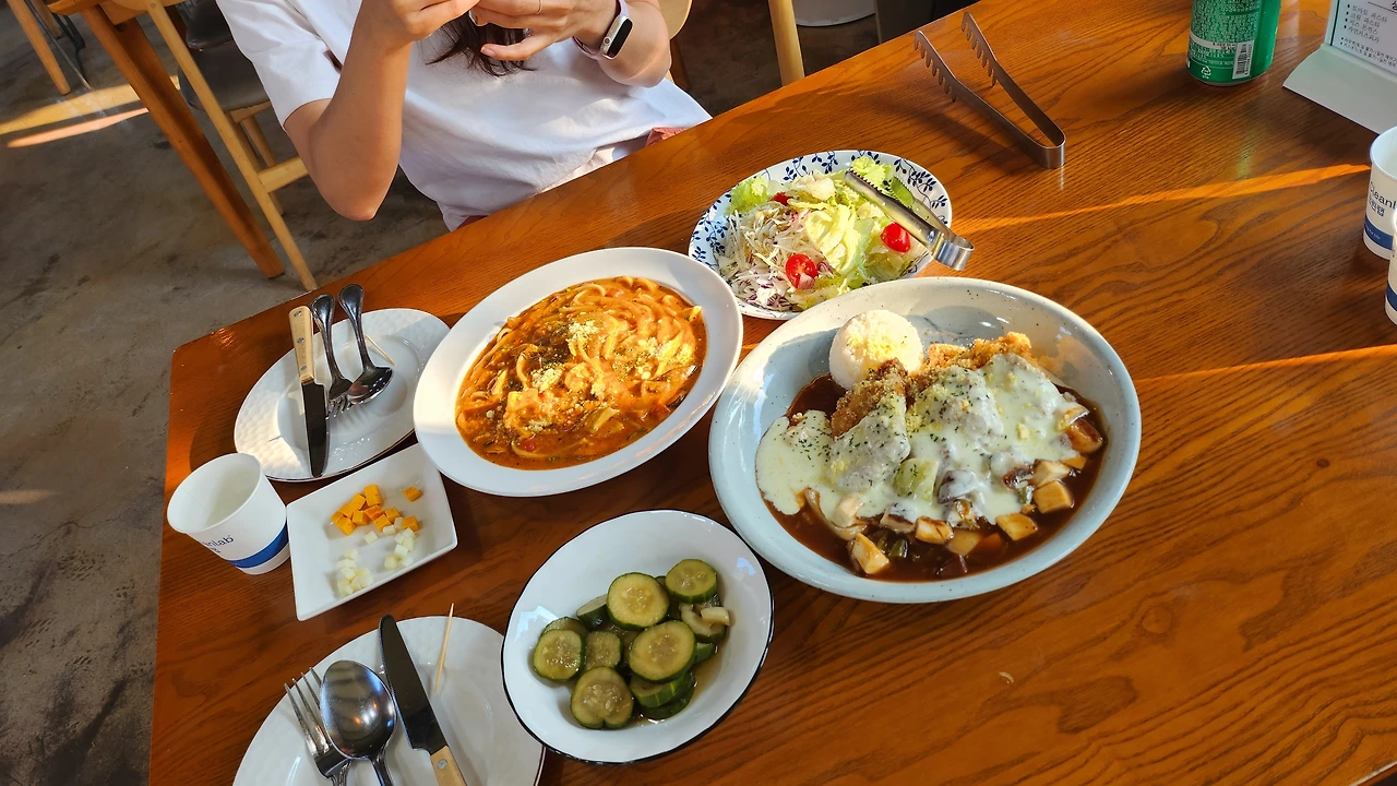 허기가 진 우리는 마지막 식사를 하러 갔다. 어제 소품샵 사장님이 알려준 또 다른 현지인 맛집, <상남치즈>였다. 치즈를 배우러 해외 유학까지 다녀오셨다는 치즈 장인이 운영하시는 곳답게 과연 음식에 들어간 치즈맛이 일품이었다. 우리는 돈가스 소스까지 삭삭 긁어먹었다.