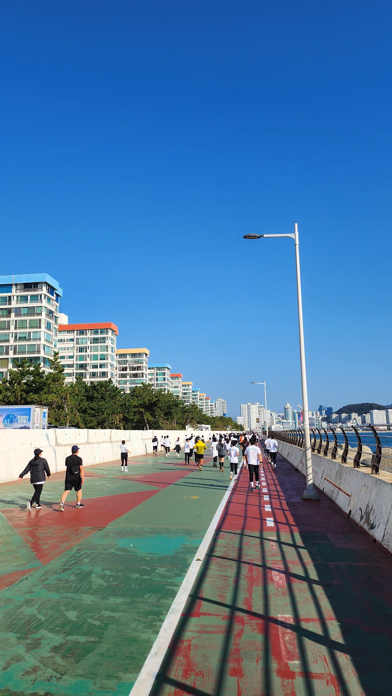 어쨌든 완주했습니다. 이미 결승선에 도착한 J가 저를 반갑게 맞아주었어요. 해냈다는 성취감이, 아드레날린과 도파민이 샤워하듯 쏟아졌습니다. 건강한 기운을 듬뿍 받아서 더 건강해진 기분. 우리는 자랑스럽게 완주 메달을 목에 걸고 근처 신세계백화점에 가서 쌀국수를 먹었습니다. 바다를 보면서 달리며 더없이 신났다며, 내년에 꼭 다시 오기로 했습니다.
