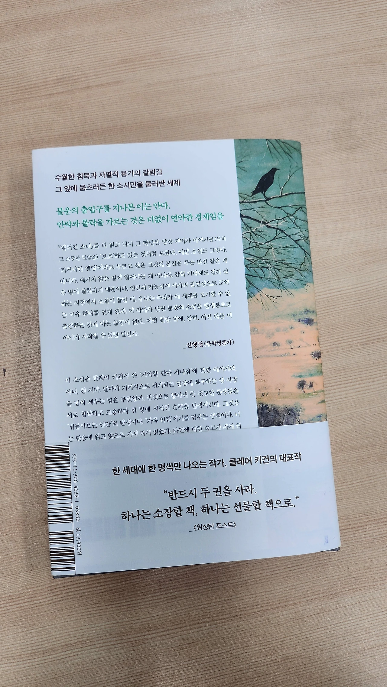 결말은 드라마틱하다기보다 시적이다. 명시적인 엔딩에 길들여진 독자라면 그 이후 펼쳐질 일들에 관해 궁금증이 일겠지만 이 소설은 초지일관 억누르고 암시하는 편이다. 마지막 장을 읽고 이렇게 끝나버리는 것인가 싶다가, 이내 뒤에 일어날 일들은 필연적으로 기록되지 않았다는 걸 깨달았다. 다시 첫 페이지로 돌아와 첫 문장을 읽으며 비로소 그 섬세한 암시를 발견할 수 있었다. 단어가 주는 절묘한 감각과 짜임새 있게 직조된 문장. 그곳에서 뿜어져 나오는 분위기는 은근한 여운이 있다. 그 감동은 재독할 때 더욱 짙어진다. 반드시 최소 2회독 해야 하는 소설이라고 말하고 싶다.