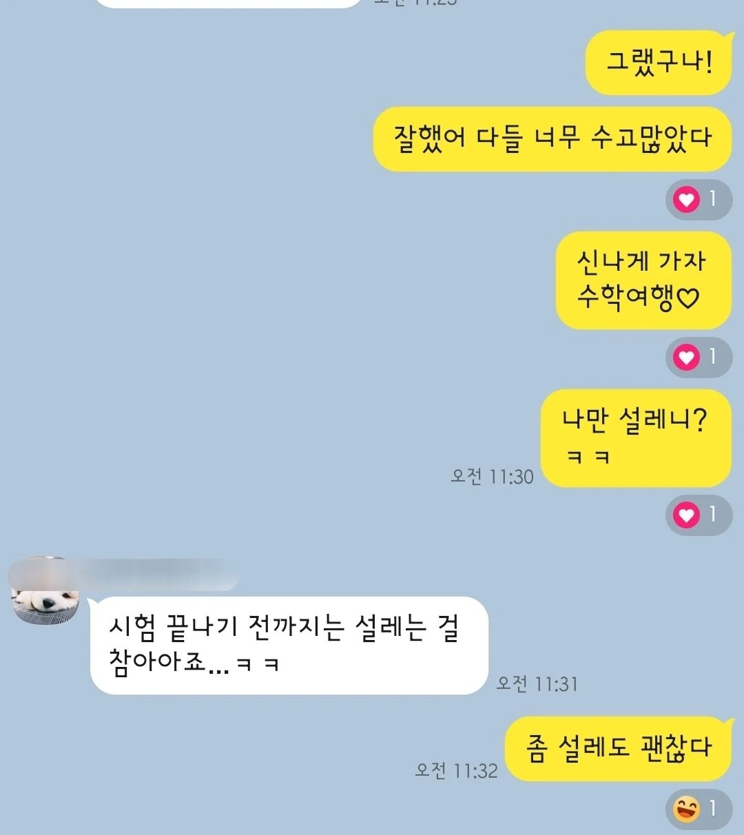 ‘시험 끝나기 전까지는 설레는 걸 참아아죠..ㅋ’