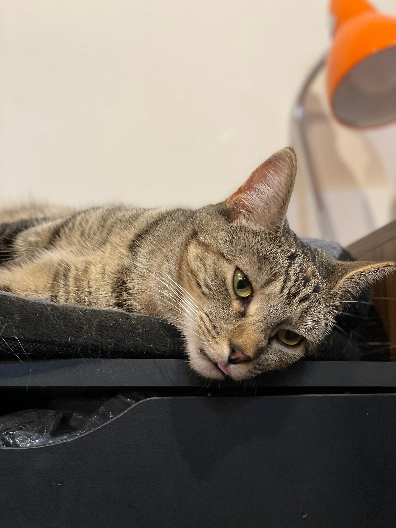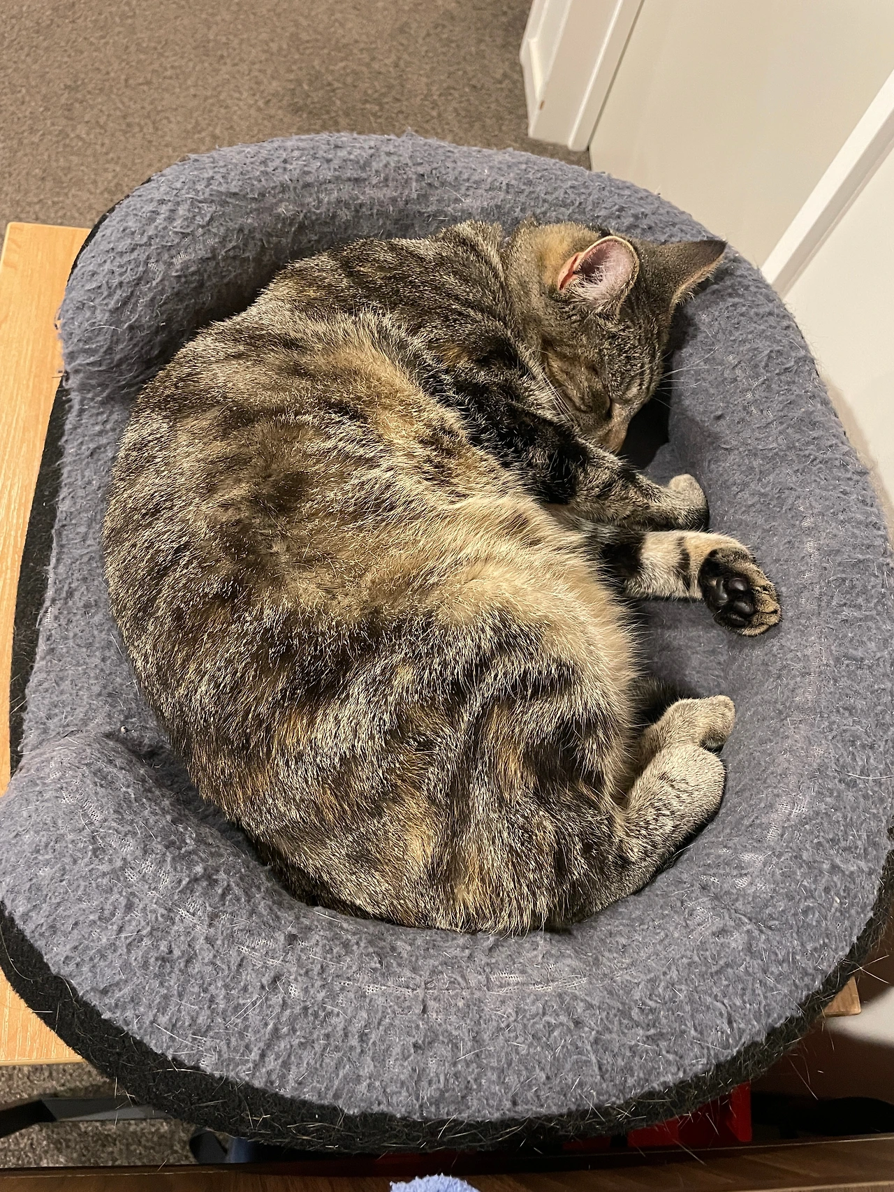 우리 집 거실에는 한 눈으로 거실을 조망할 수 있는 곳에 루나의 침대가 위치해 있다. 이 침대는 고양이용 전기장판이 아래 깔려있어서 겨울용으로 구입했는데, 루나의 애착 물건이 되어버려 사시사철 같은 곳에 놓여있다. 여름에는 전선을 뽑아 따로 보관하고 루나의 낮잠 침대용으로 사용한다.