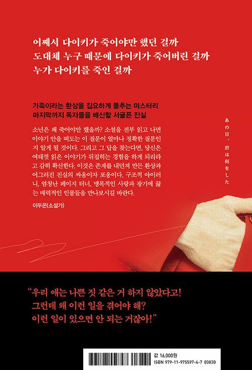― 이 책을 읽은 제 친구는 "난 처음에 그래서 이게 단편집인 줄 알았다니까?"라는 말을 할 정도로 굉장히 뜬금없어요. 하지만 읽다 보면 15년 전 이즈미 아들이 죽은 사고와 현재 살인 사건이 연결되어 있다는 단서가 조금씩 등장합니다.