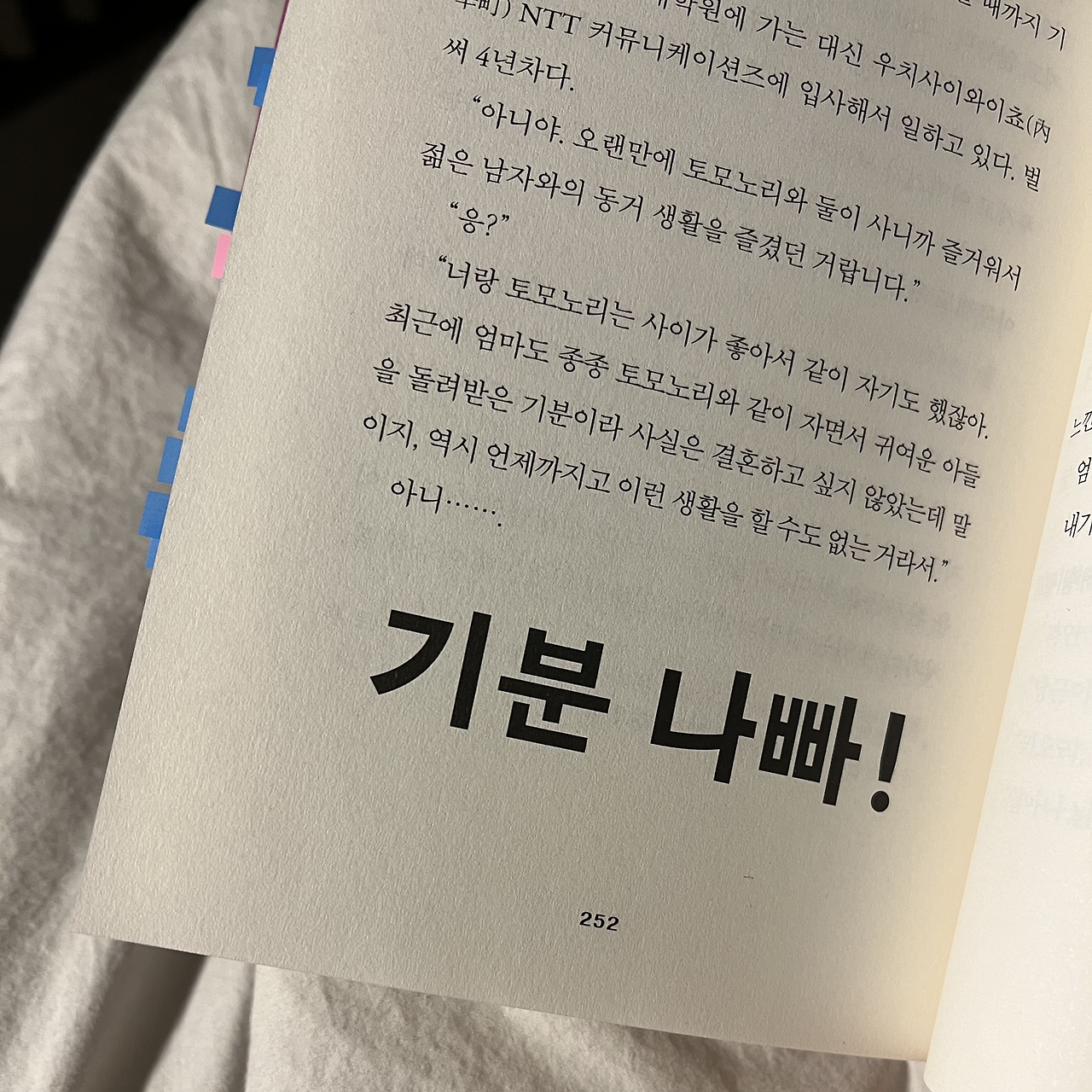 — 카오리의 일상은 그리 좋지는 않았지마 특별히 나쁘지도 않았어요. 하지만 토모노리에게 여자친구가 생기면서, 또 대학을 간 후 우연히 아빠의 불륜 상대를 만나며 조금씩 일상이 변합니다. 평소처럼 방문을 열고 들어갔다 남동생의 자위를 보게 된다던가, 아빠의 불륜 상대와 친해진다던가 하는(역시 쓰면서도 이상하지만요.. 그게 또 읽다 보면 마구 이상하진 않습니다..) 지금까지 한 번도 일어나지 않았던 일과 맞닥뜨리게 돼요.