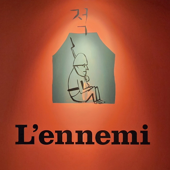 <적>이라는 작품은 전쟁에 대한 인간적인 이해를 다루고 있는 듯했다. 각각의 참호에 숨어있던 두 병사는 서로를 '적'으로 여기고 싸운다. 그들은 서로가 괴물처럼 잔인할 것이라고 상상하지만 시간이 지나면서 점점 그 적이 자신과 다르지 않은 평범한 사람임을 깨닫는 과정을 보여준다. 이 작품이 독특했던 점은, 전쟁 이야기를 다루면서도 배경을 과감히 삭제하고 철조망, 참호 구덩이와 같은 최소한의 요소만을 아주 단순한 선으로 표현했다는 점이다. 단순한 선의 이어짐은 오히려 인간 내면의 복잡한 감정에 집중하고, 이야기에 몰입하도록 만든다.