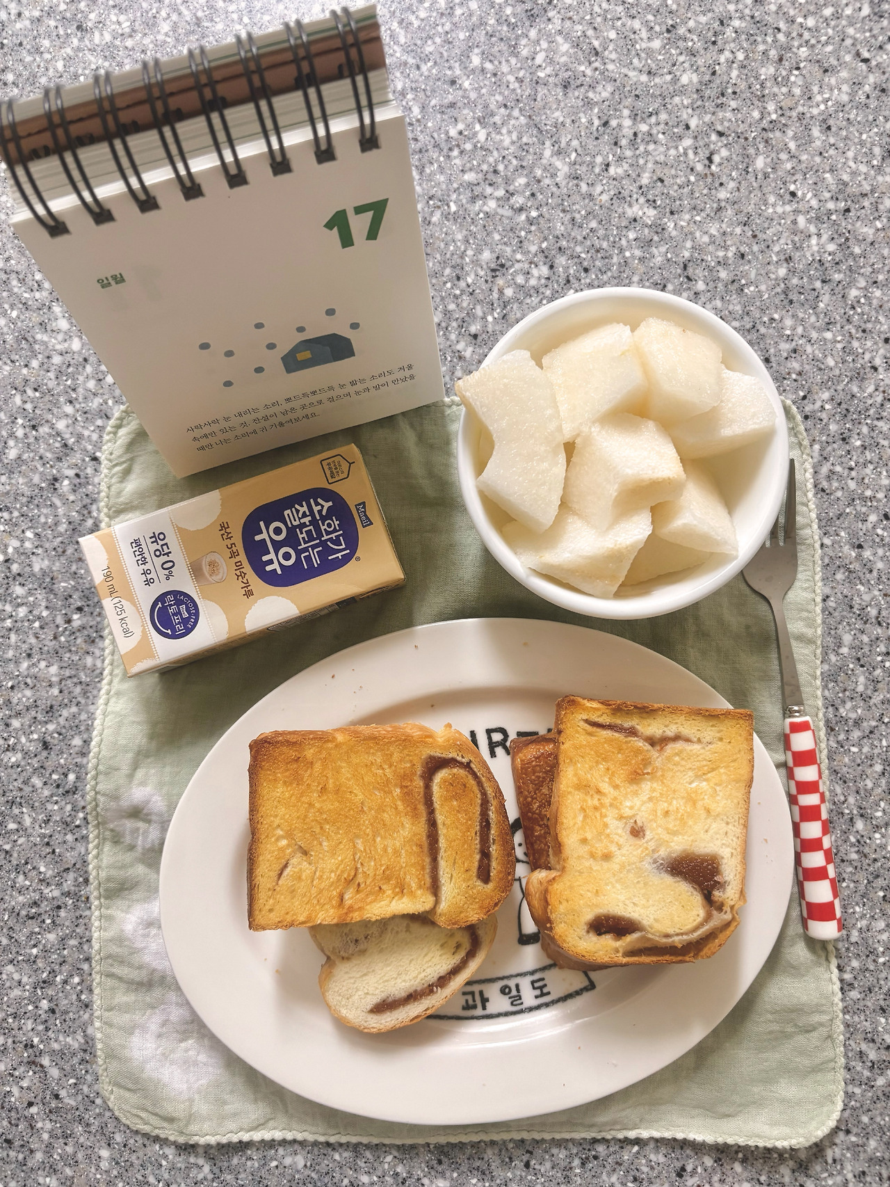 과일도 돌잔치 때 세인이가 선물로 준 그릇과 일본 여행에서 사다 준 손수건, 이사 선물이라며 오마이북 사장님이 건네준 프라이팬, 그리고 토마토와 반시 농사를 짓는 친구들이 건네준 과일들까지. 우리는 분명 둘이서 밥을 먹고 있었는데, 식탁 위에는 그보다 훨씬 많은 사람들이 함께 앉아 있는 것 같았다.