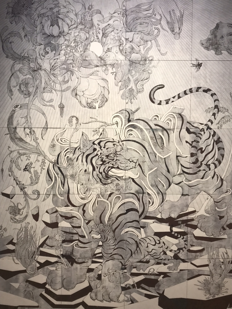 그의 완벽한 드로잉과 다채로운 색채는 현실과 환상을 넘나드는 몽환적인 화면을 창조하는 중요한 요소다. 또한 동양과 서양의 다양한 도상들과 재료, 표현법을 혼합하고 동식물을 함께 그림으로써 그의 대표적인 하이브리드 도상을 창조한다. 미국과 아시아의 경계에 머무르는 작가의 분열된 정체성을 반영하는 혼성적 형상들은 독창적인 은유와 상징들과 어우러져 신비로우면서도 이질적인 감정을 불러일으킨다.