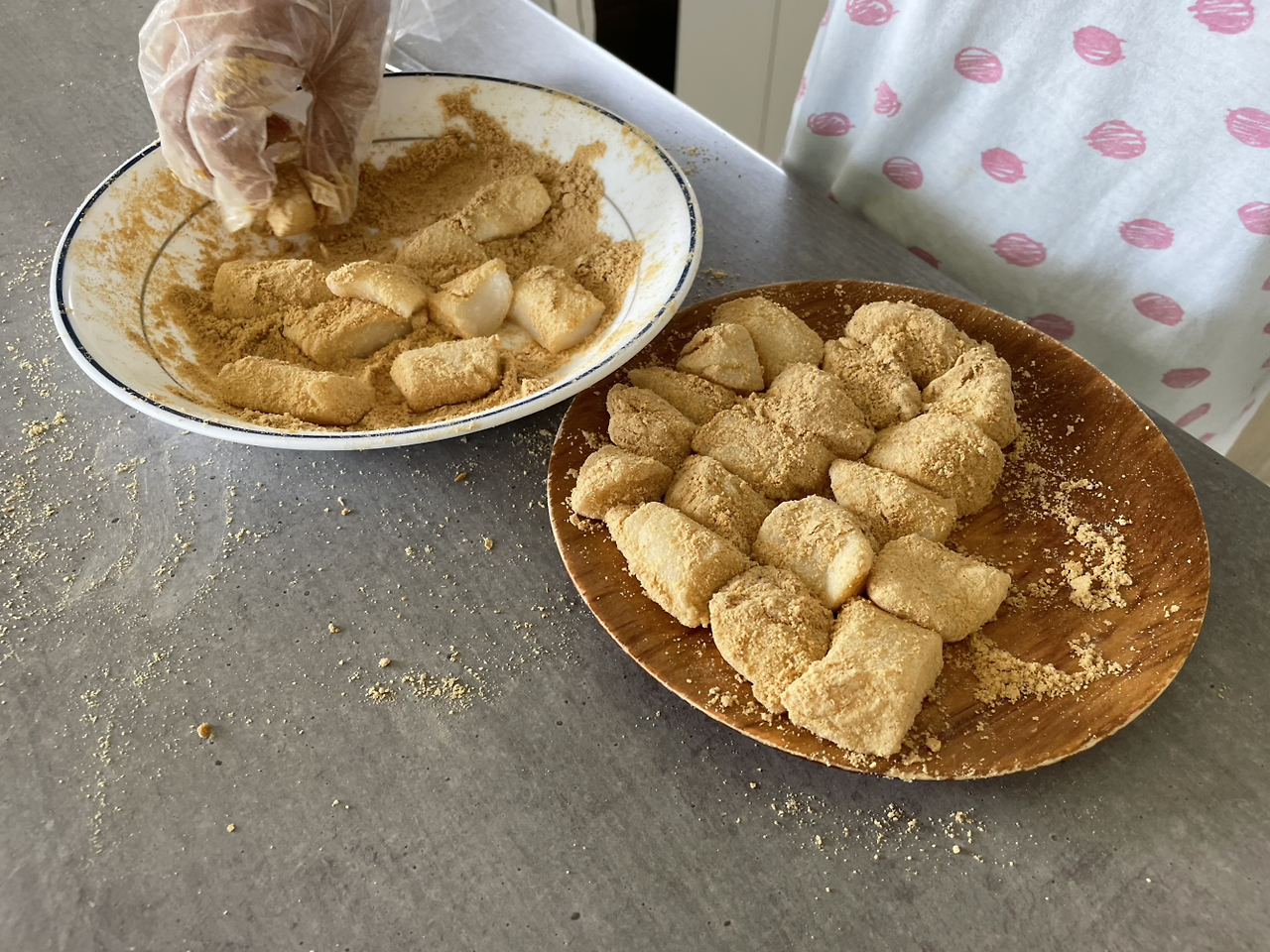 떡 만들기의 시작은 뉴질랜드였다. 워낙 먹는 게 궁하다 보니(한식이 제한적임) 건수만 있으면 뭘 만들어 먹을까 손이 근질근질 하던 때였다. 그러다 우연히 유튜브에서 본 떡 만들기 영상에 띵동, 불이 켜졌다. 당장 한인마트로 뛰어가 습식 찹쌀가루와 콩고물을 샀다. 반죽에 설탕과 물을 섞고 전자레인지에 1분을 돌린다. 목장갑 위에 비닐장갑을 끼고 뜨거운 반죽을 치댄 뒤 다시 전자레인지에 돌린다. 곤죽이던 가루가 점점 한 덩어리로 뭉쳐졌다. 마지막으로 꺼낸 반죽은 완전한 찹쌀떡이 되어 있었다. 헉, 신세계다!