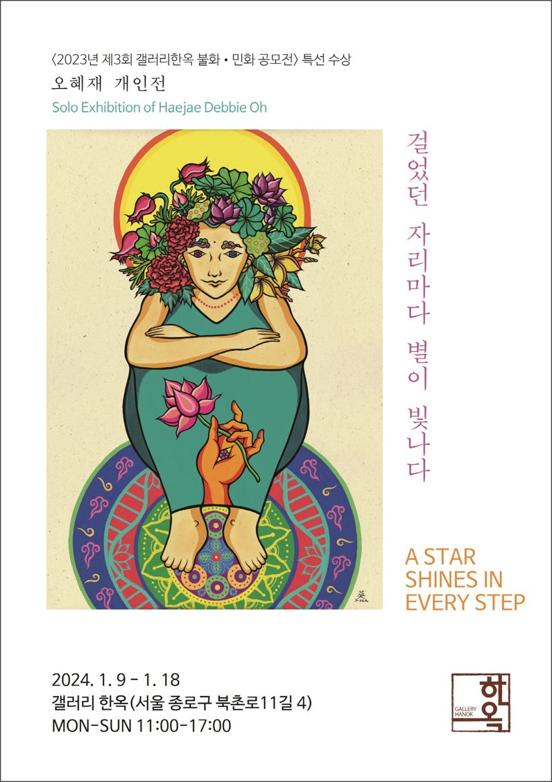 이번 개인전은 2023년 <제3회 갤러리 한옥 불화·민화 공모전> 입상자로서 거머쥔 기회이자, 독학 예술가(self-taught artist)로 활동한 지 10주년이 되는 해에 마련한 뜻깊은 자리다. 지난 10년간의 궤적은 무수한 시행착오를 자양분 삼으며, 미술계의 외부자(outsider)가 예술가로 거듭나기 위해 걸었던 유의미한 여정이다. 이번 전시에서는 전통과 참신함을 토대로 불교·민화의 활성화에 힘써온, 갤러리 한옥의 기조에 걸맞은 작품들을 선보인다.