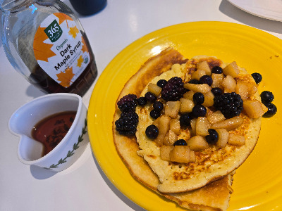 하지만 토요일 아침만큼은 예외적으로 메이플 시럽 듬뿍 뿌린 팬케이크를 먹는다.