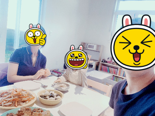 아이는 평소와는 다른 저녁상이라고 느꼈는지 기대 스런 얼굴로 얼른 자기 의자에 앉았다.