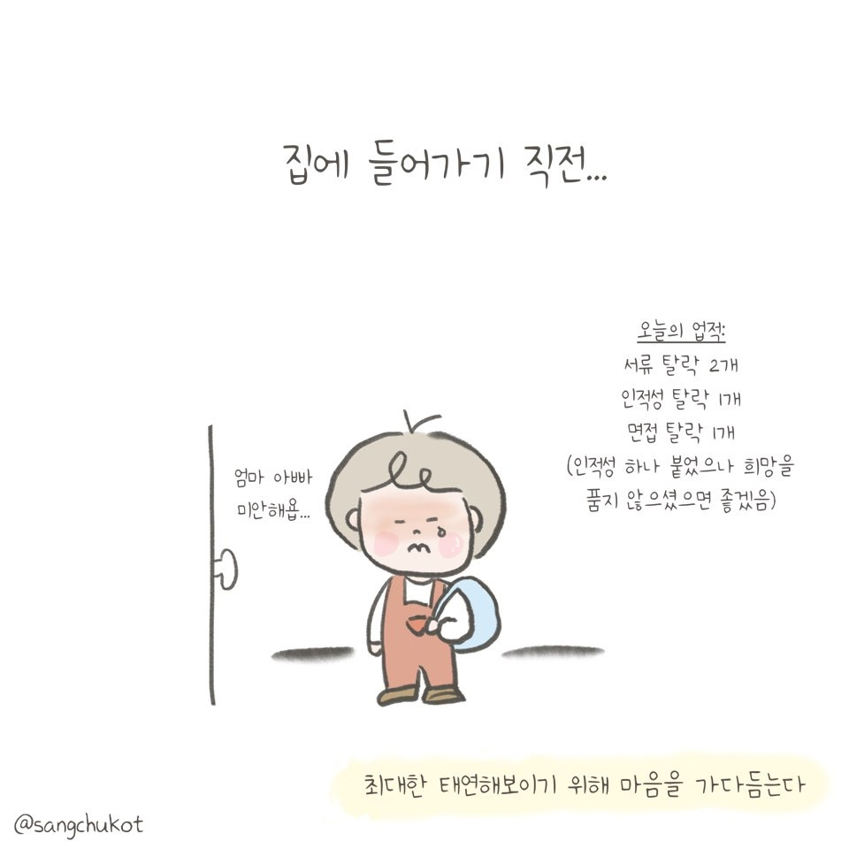 나만큼 좋은 소식을 애타게 기다리고 계시는 부모님을 매일 보는 것이 가장 힘들었다. 서류합격이 그 많은 관문을 거쳐 최종 합격으로 이어